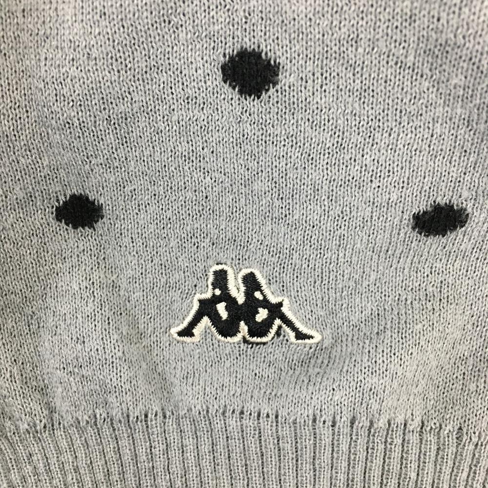 カッパ ニットベスト グレー×黒 ドット コットン混 レディース L ゴルフウェア Kappa