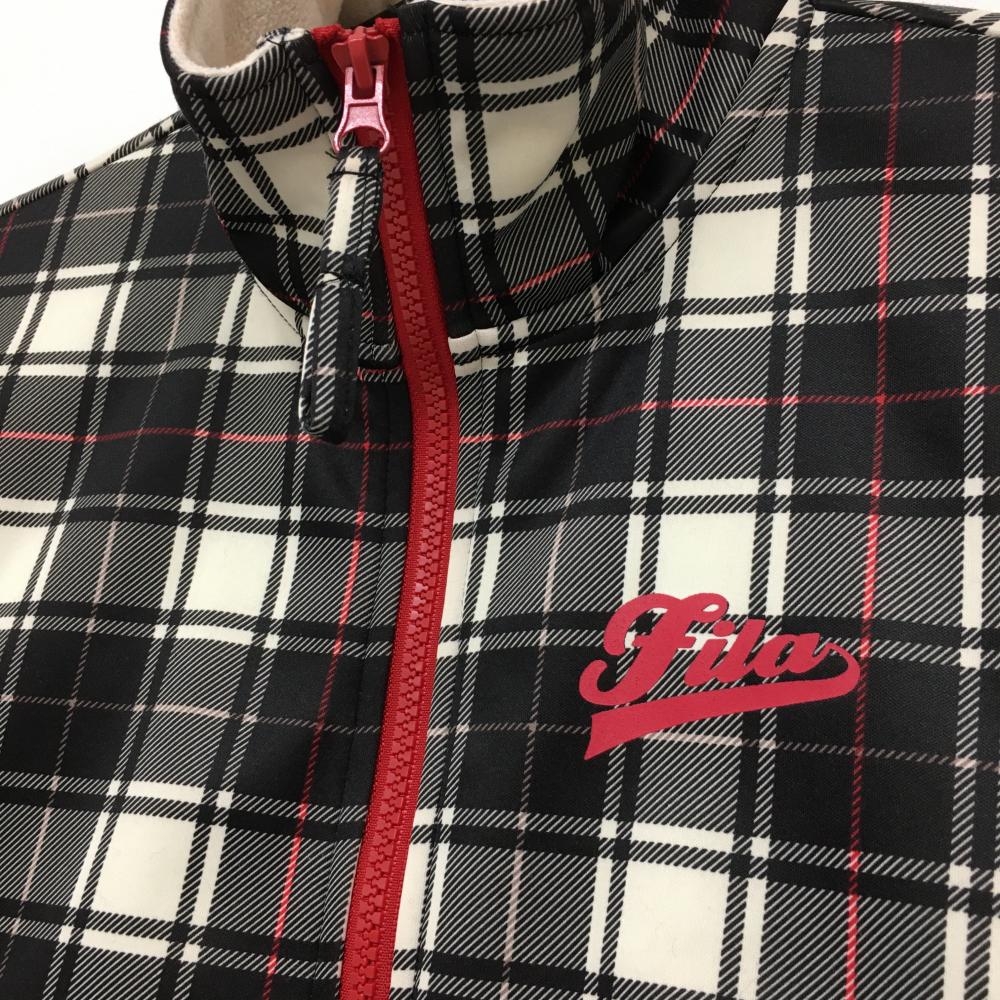 フィラゴルフ ジャケットブルゾン 黒×アイボリー チェック柄 裏微起毛 レディース M ゴルフウェア FILA GOLF