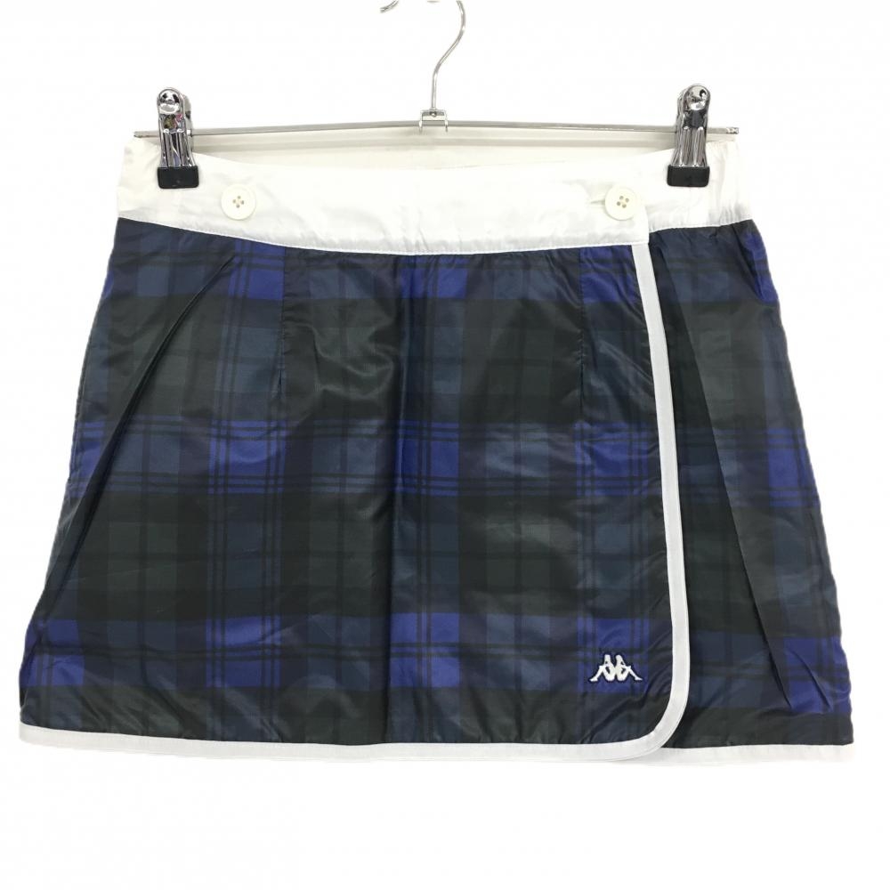 【超美品】カッパ 中綿ラップスカート 白×ネイビー キルティング 裏チェック レディース 7 ゴルフウェア Kappa