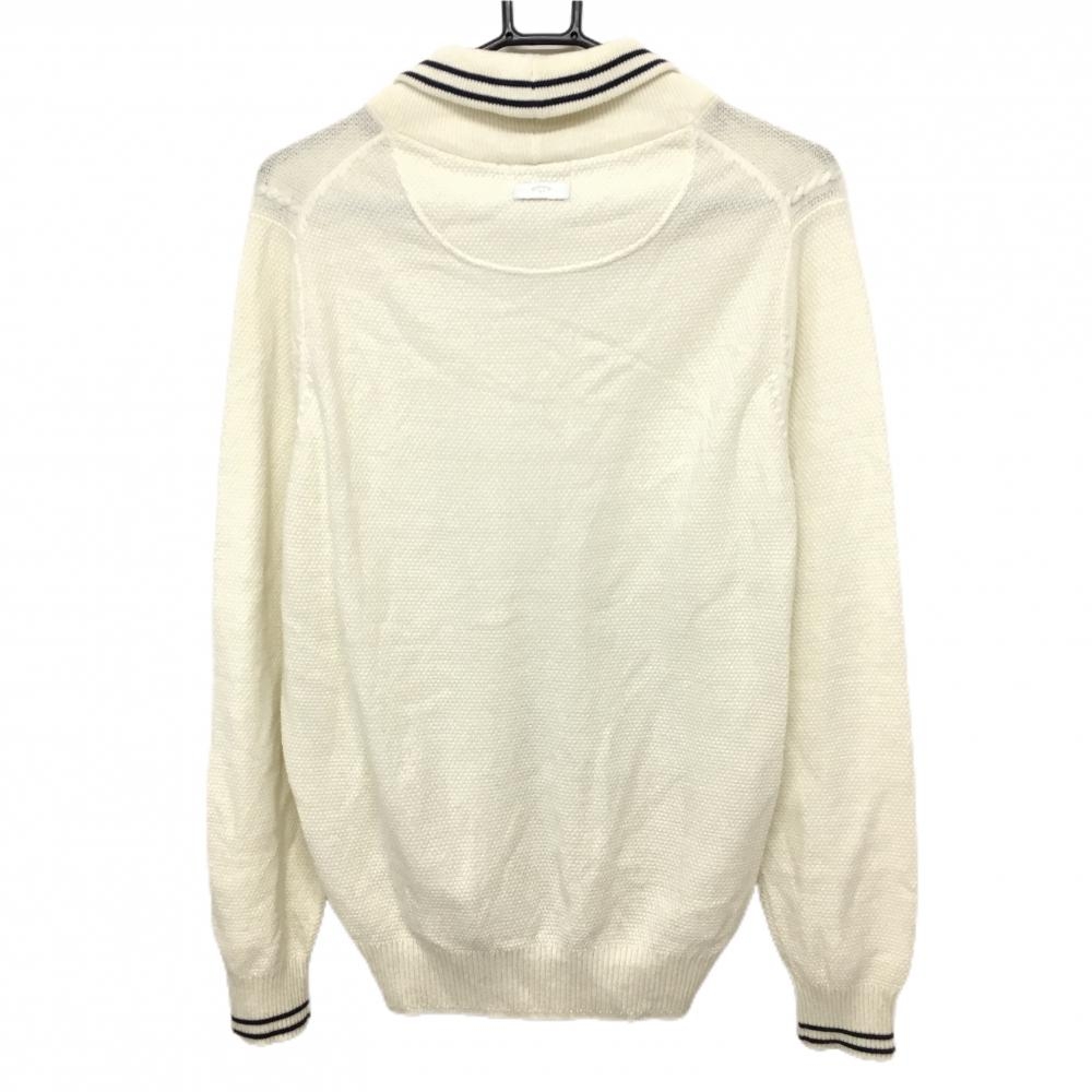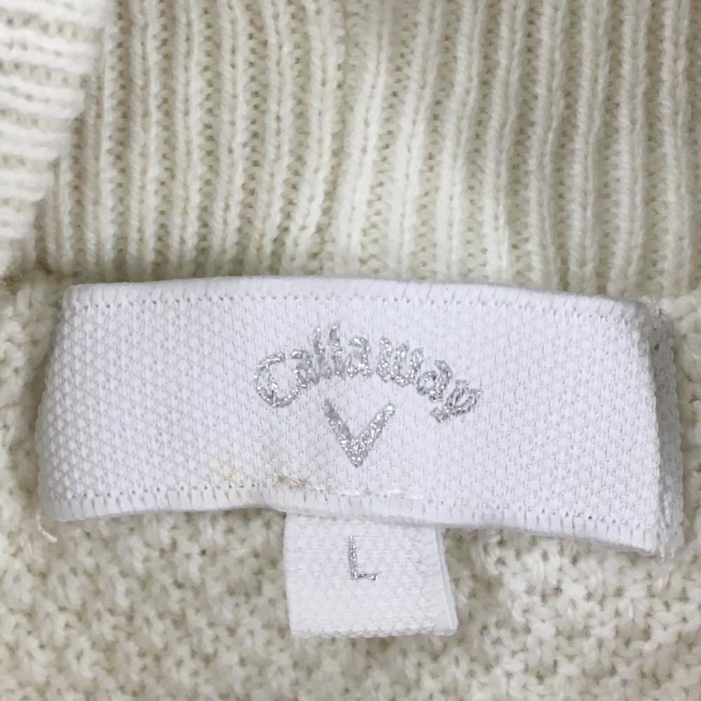 【美品】キャロウェイ 襟付きセーター アイボリー×ネイビー ニット 一部ケーブル編み アクリル混 メンズ L ゴルフウェア Callaway