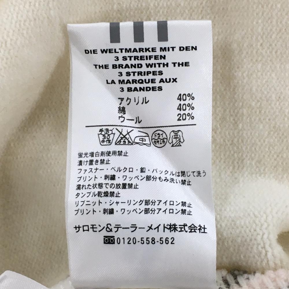 【美品】アディダス ニットベスト 白×グレー×ライトピンク 前面チェック ウール混 レディース OT/XG ゴルフウェア adidas