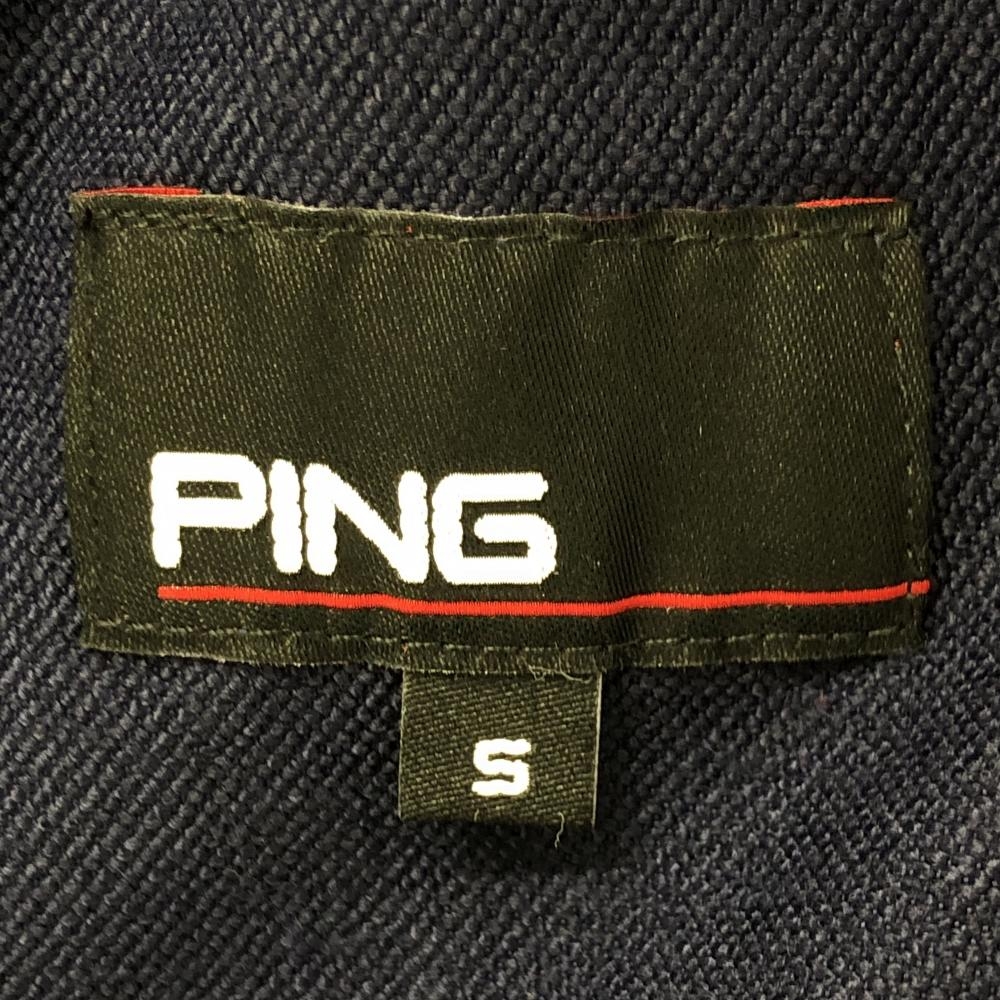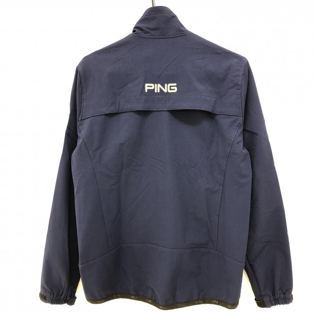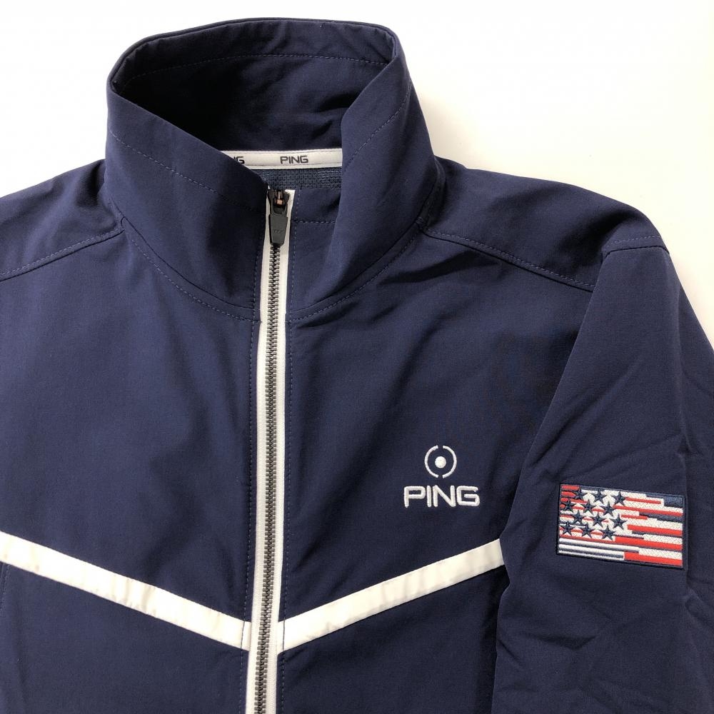 【超美品】ピン ジャケットブルゾン ネイビー×白 ロゴ刺しゅう メンズ S ゴルフウェア PING