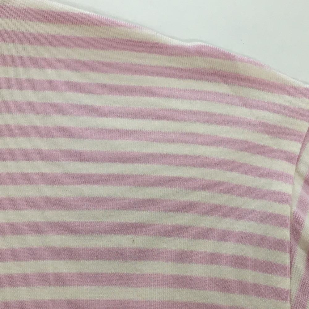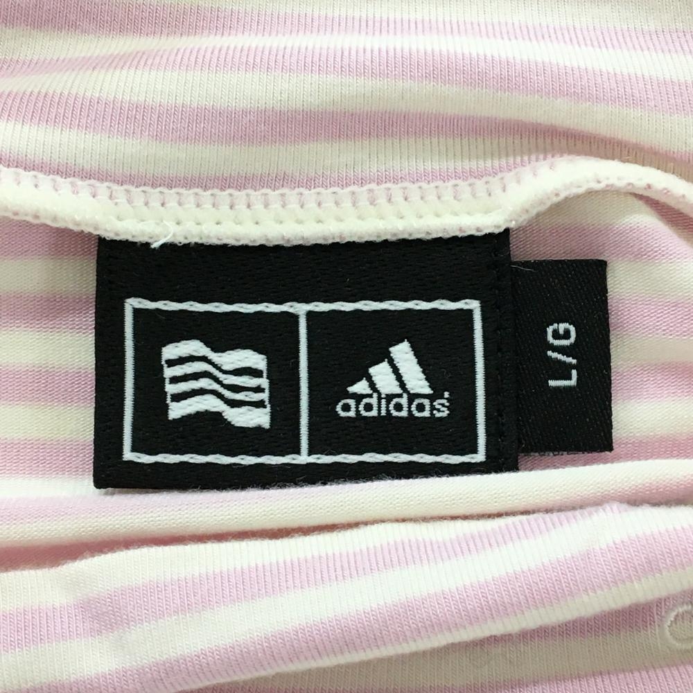 アディダス 長袖ハイネックシャツ ピンク×白 ボーダー ネックロゴ レディース L/G ゴルフウェア adidas