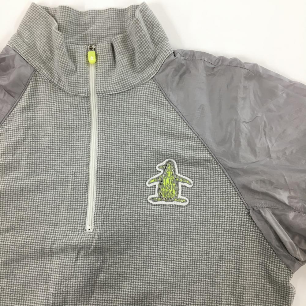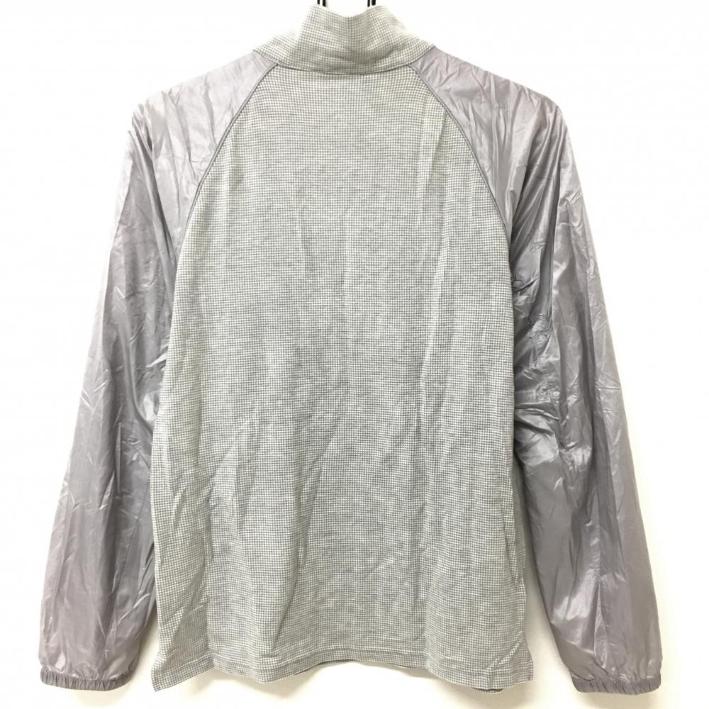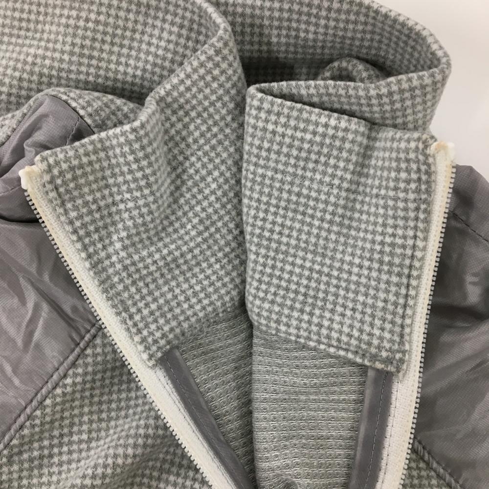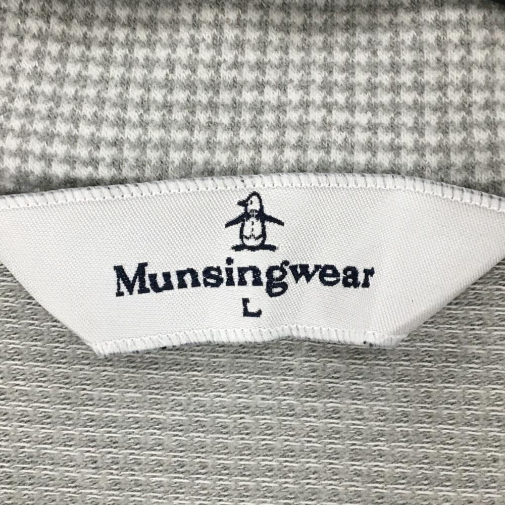 【美品】マンシングウェア 長袖ハイネックシャツ グレー×白 身頃千鳥格子 袖異素材レイヤード レディース L ゴルフウェア Munsingwear