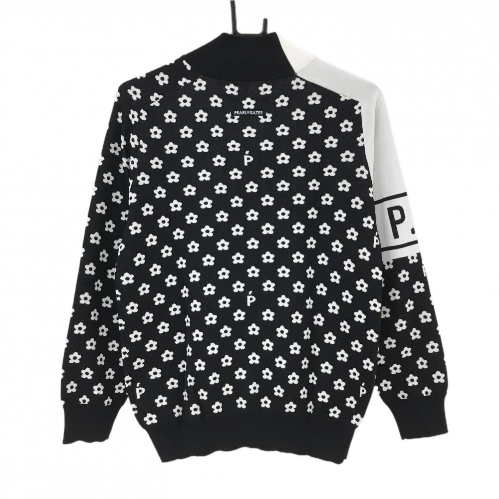 【超美品】パーリーゲイツ ニットジャケット ネイビー×白 花柄 レディース 1(M) ゴルフウェア 2023年モデル PEARLY GATES