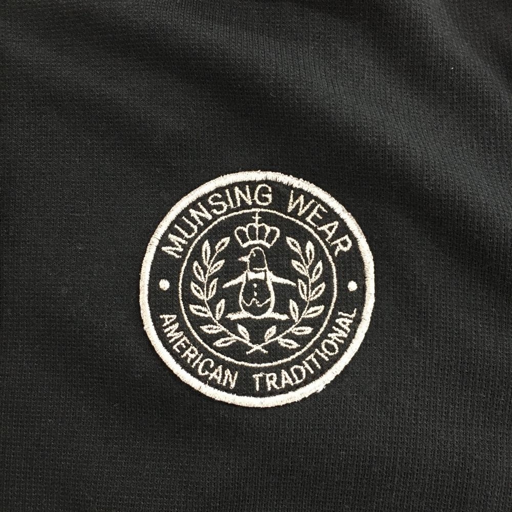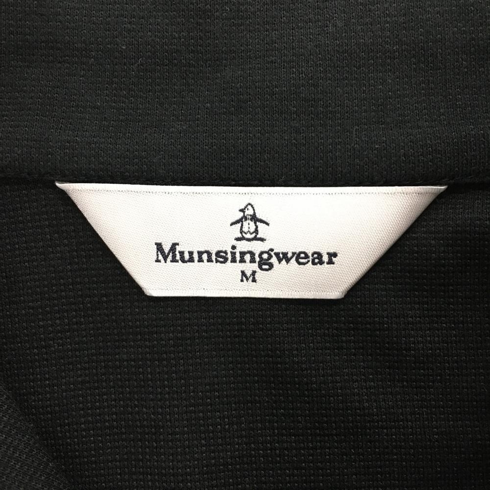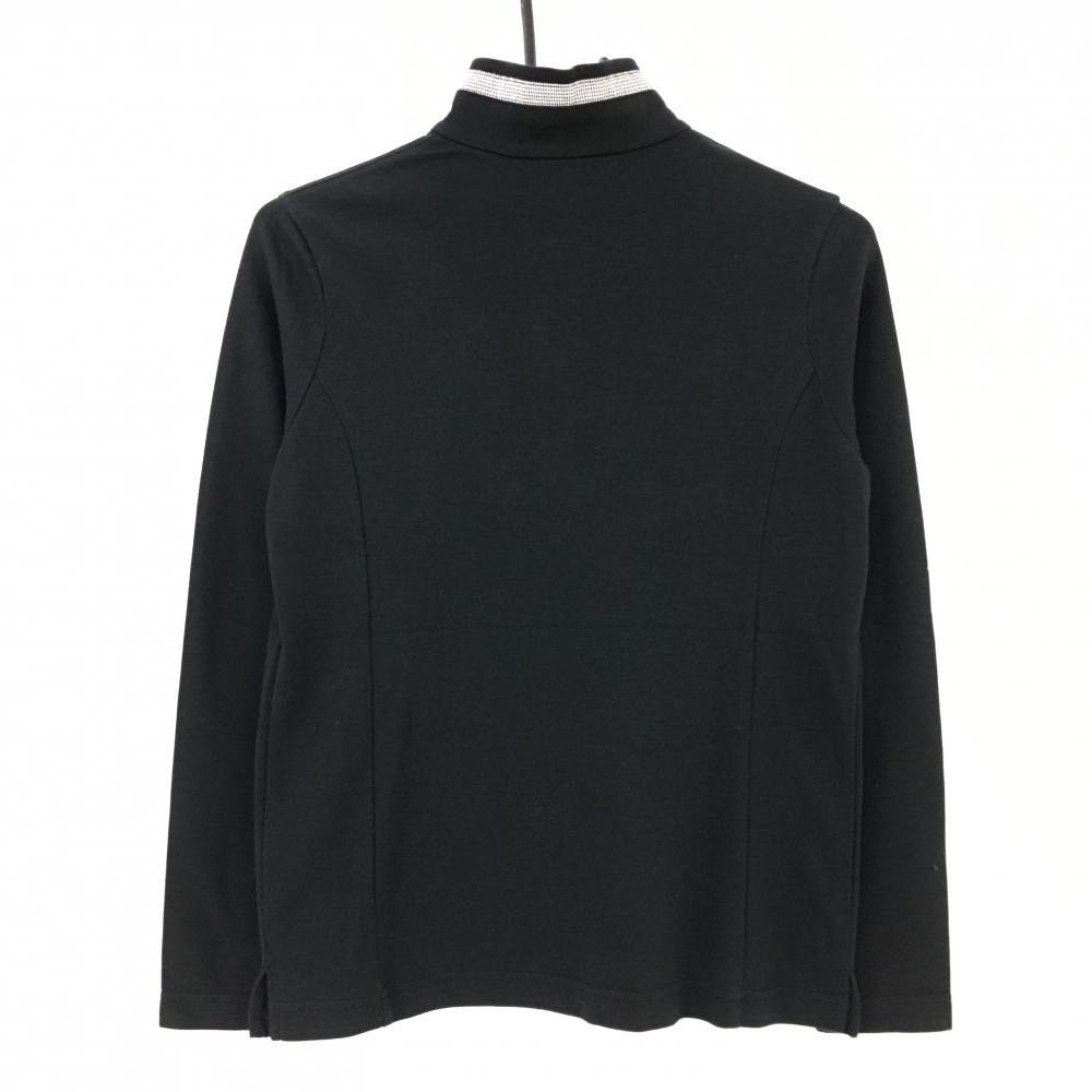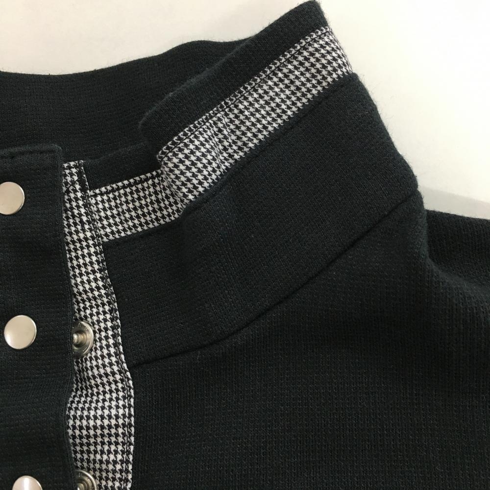 マンシングウェア 長袖ハイネックシャツ 黒 ネック・前立て内側千鳥格子 スナップボタン レディース M ゴルフウェア Munsingwear