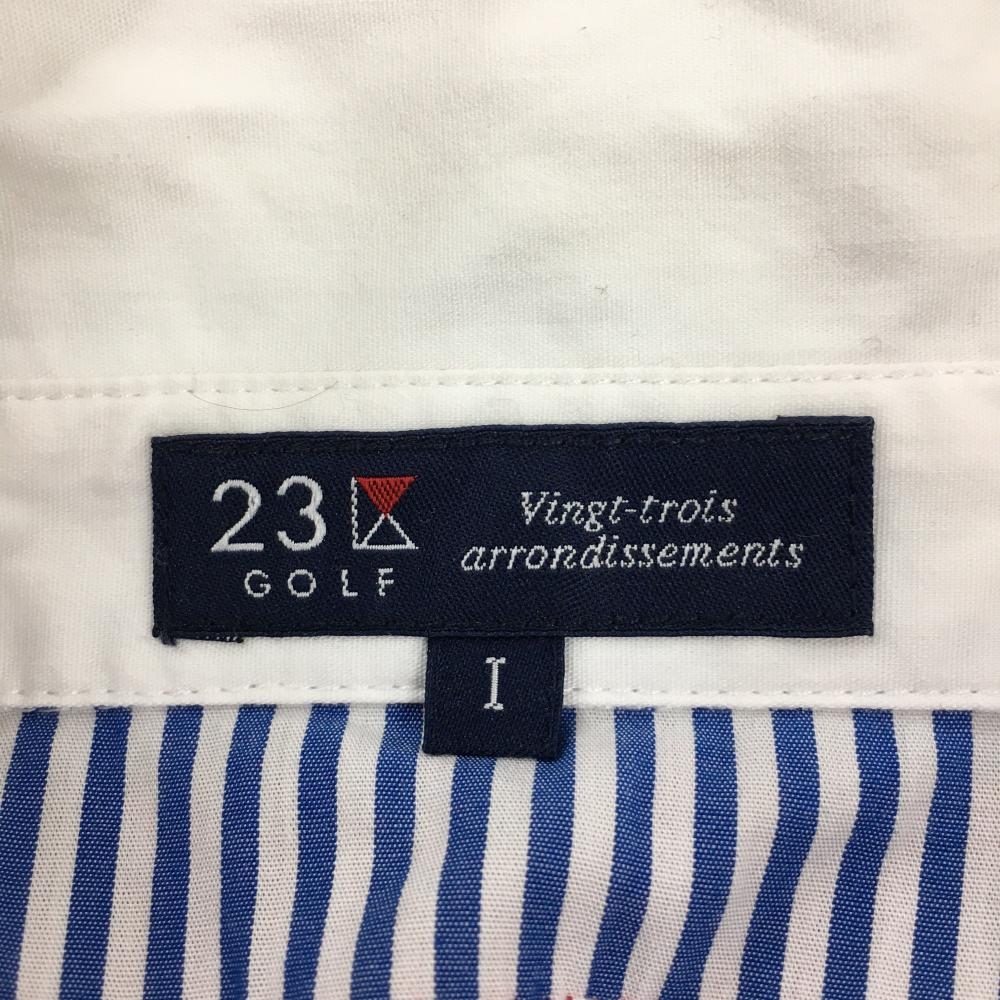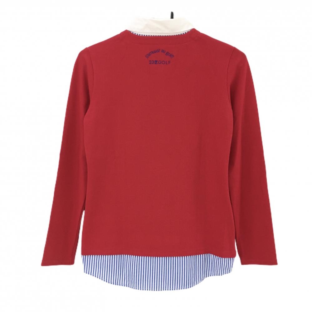 23区ゴルフ 長袖ポロシャツ レッド×白 レイヤード風 ストライプ レディース I(M) ゴルフウェア 23区