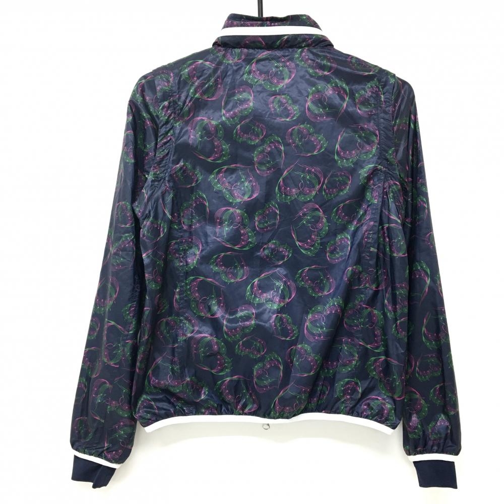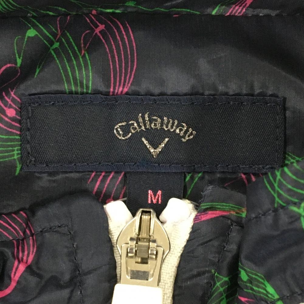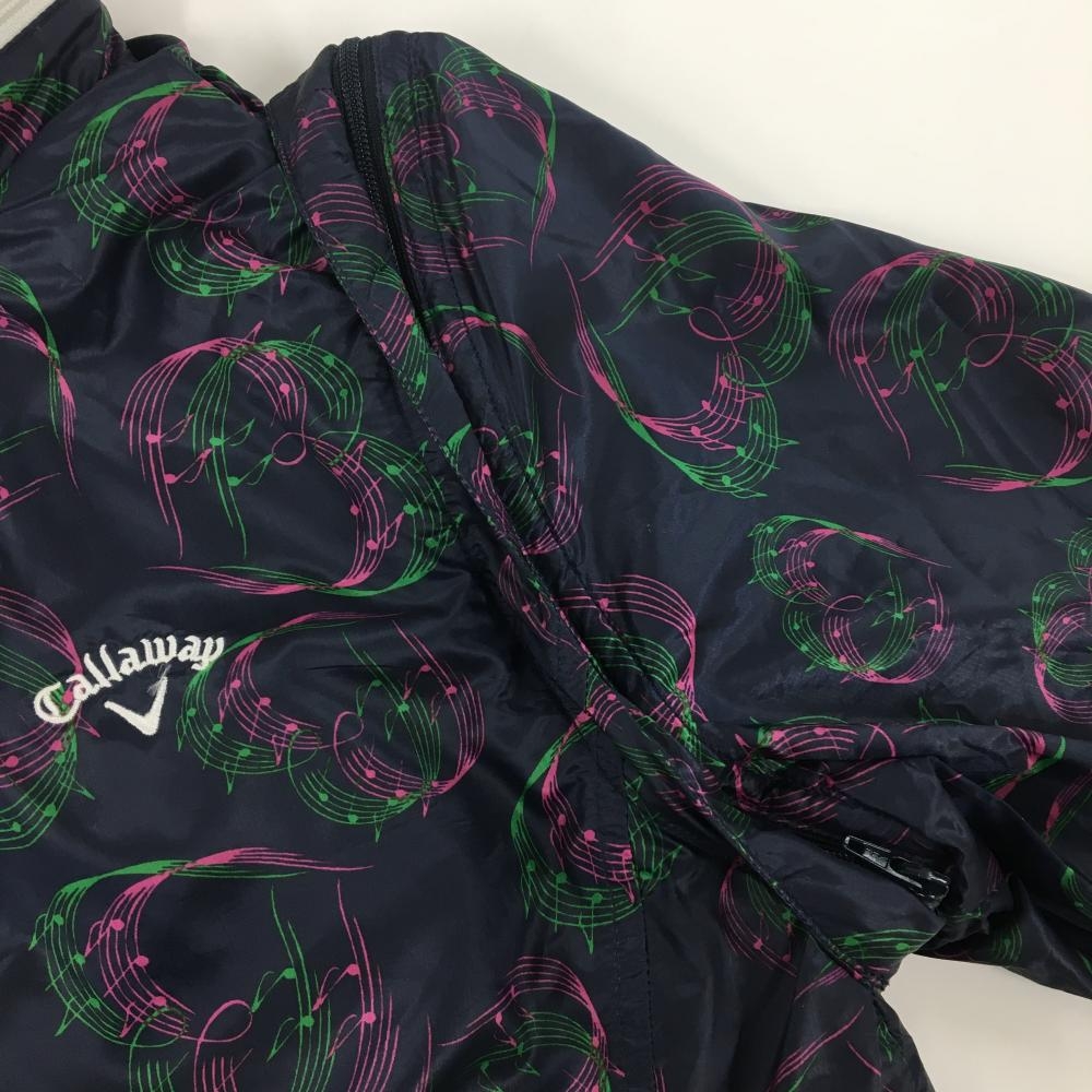 【美品】キャロウェイ 2WAYジャケット ネイビー×ピンク ハート柄 音符 袖着脱可 フード収納 レディース M ゴルフウェア Callaway