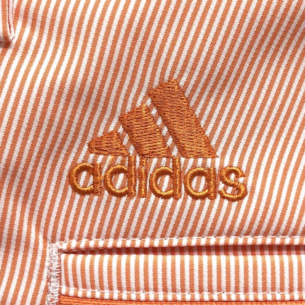 アディダス パンツ オレンジ×白 細ストライプ 裏地メッシュ ティー装着可 メンズ 85 ゴルフウェア adidas