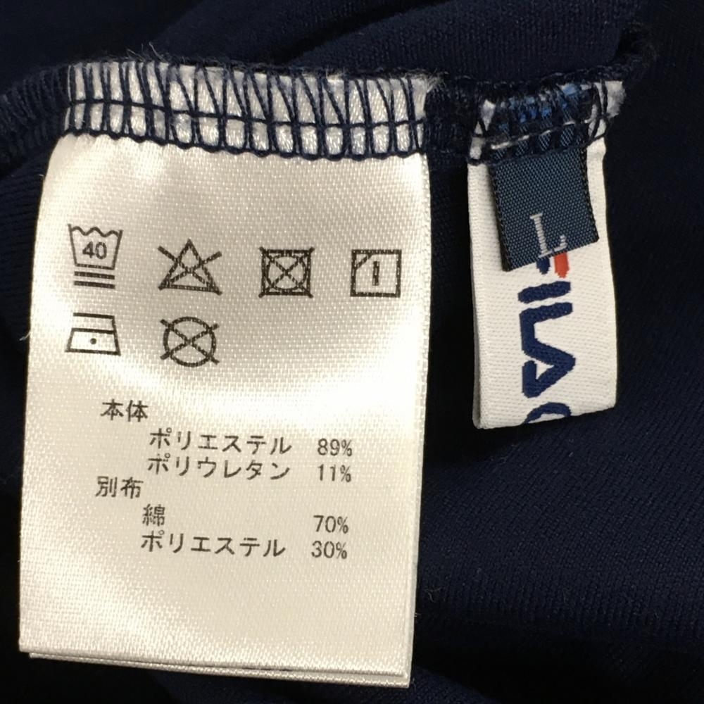 【超美品】フィラゴルフ 長袖ハイネックシャツ ネイビー×黒 ネック・袖口ベロア レディース L ゴルフウェア FILA GOLF