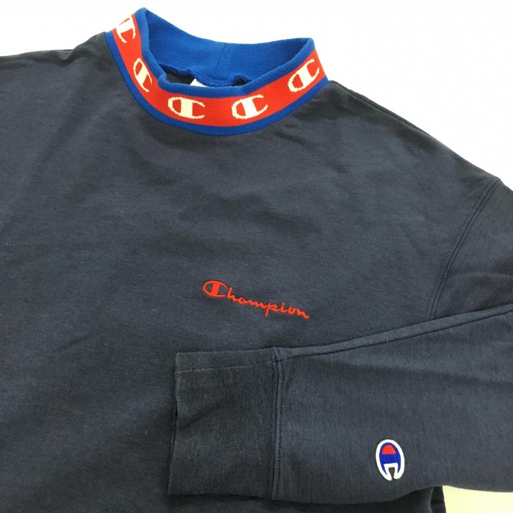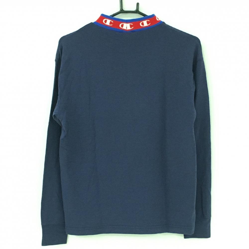 【美品】チャンピオン 長袖ハイネックシャツ ネイビー×レッド ネックロゴ 裏微起毛 レディース LARGE ゴルフウェア Champion