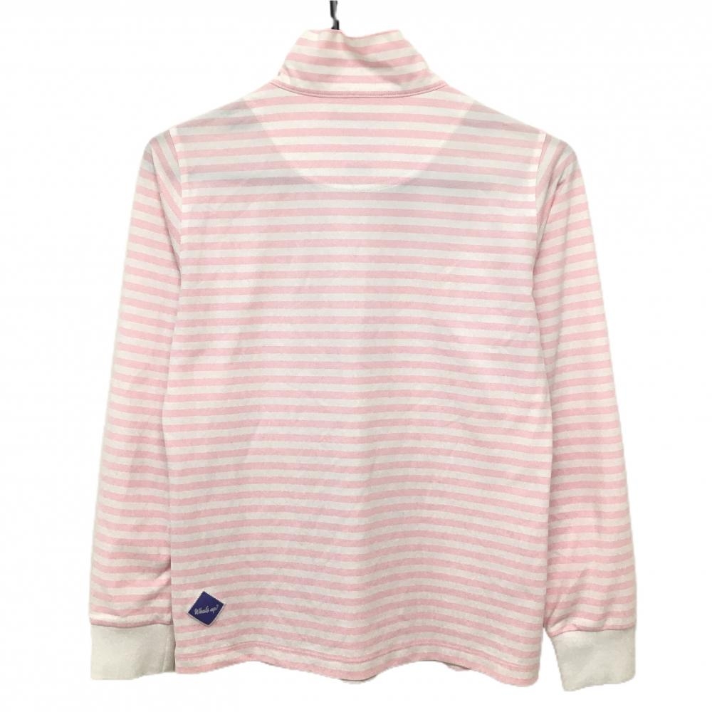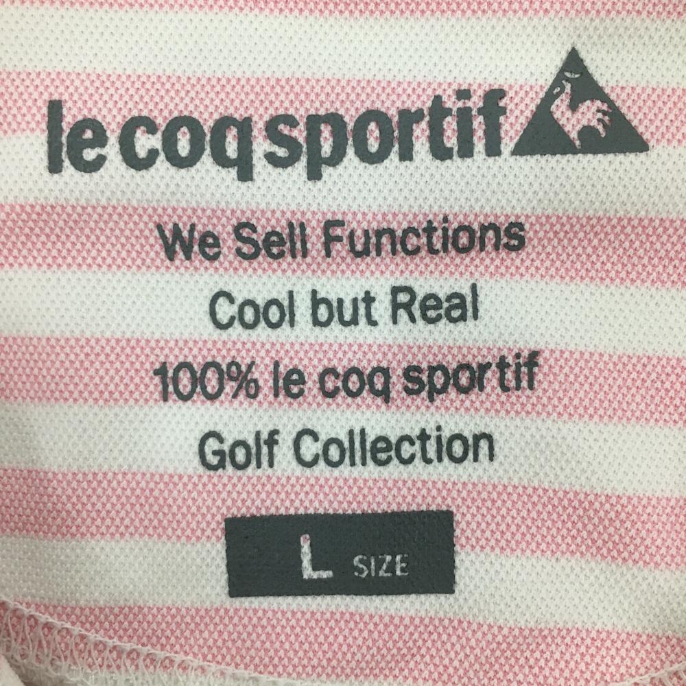 【美品】ルコック 長袖ハイネックシャツ 白×ピンク ボーダー ハーフジップ レディース L ゴルフウェア le coq sportif