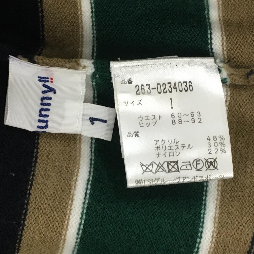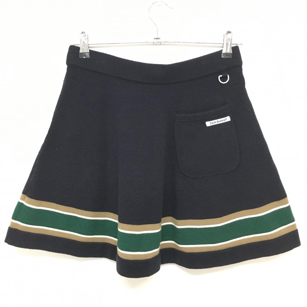 【美品】ジャックバニー ニットスカート ネイビー×グリーン 裾ライン レディース 1(M) ゴルフウェア Jack Bunny