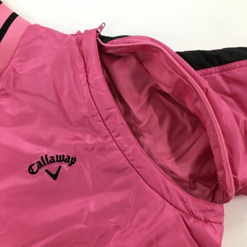 【超美品】キャロウェイ 2WAY中綿ジャケット ピンク×黒 ネック2ライン 袖着脱可 レディース M ゴルフウェア Callaway