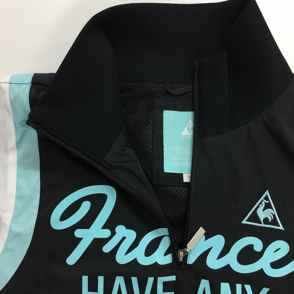 【超美品】ルコック 2WAYブルゾン 黒×ライトブルー ハーフジップ 裏地メッシュ 袖着脱可 レディース M ゴルフウェア le coq sportif