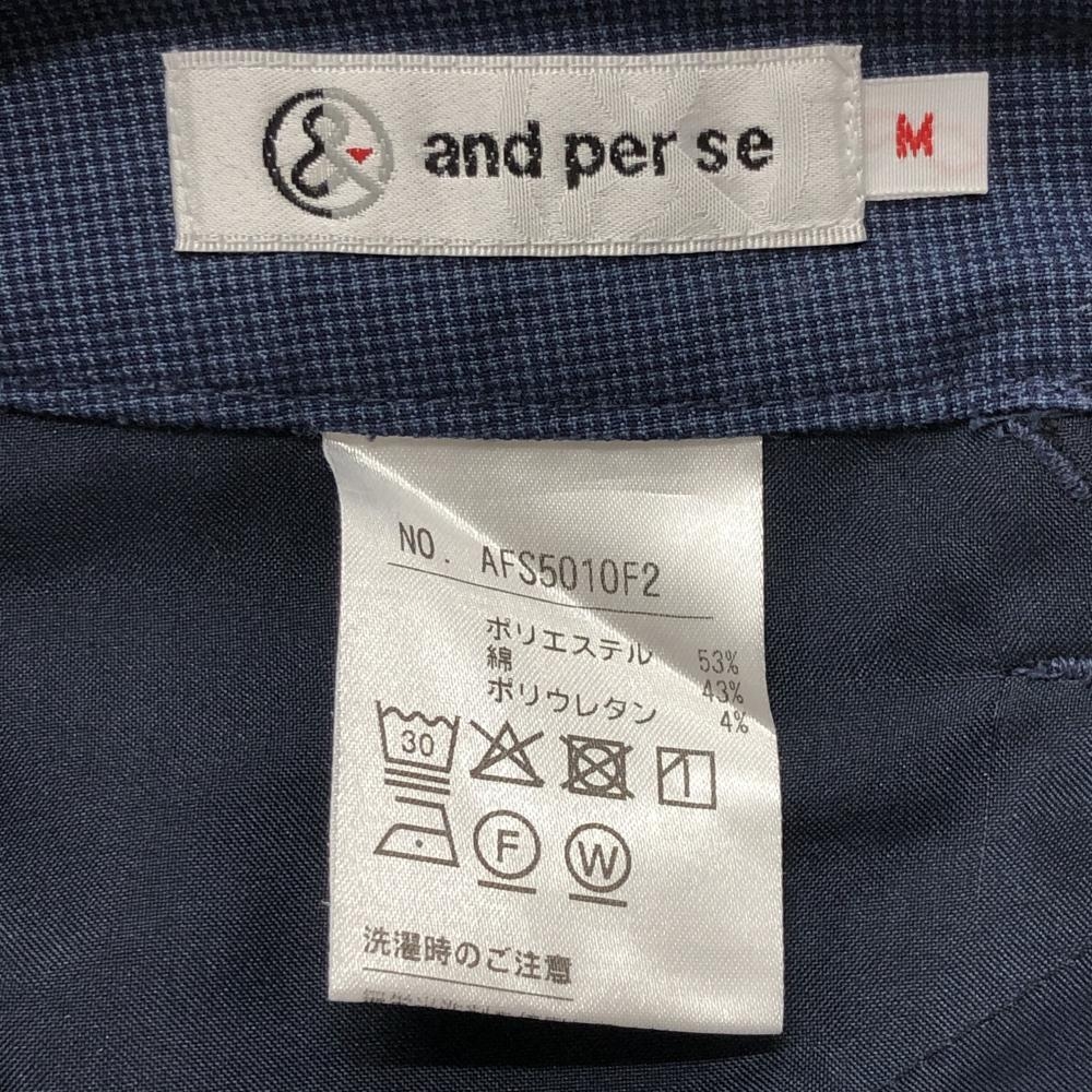 アンパスィ パンツ ネイビー 細千鳥格子 メタルチャーム レディース M ゴルフウェア and per se