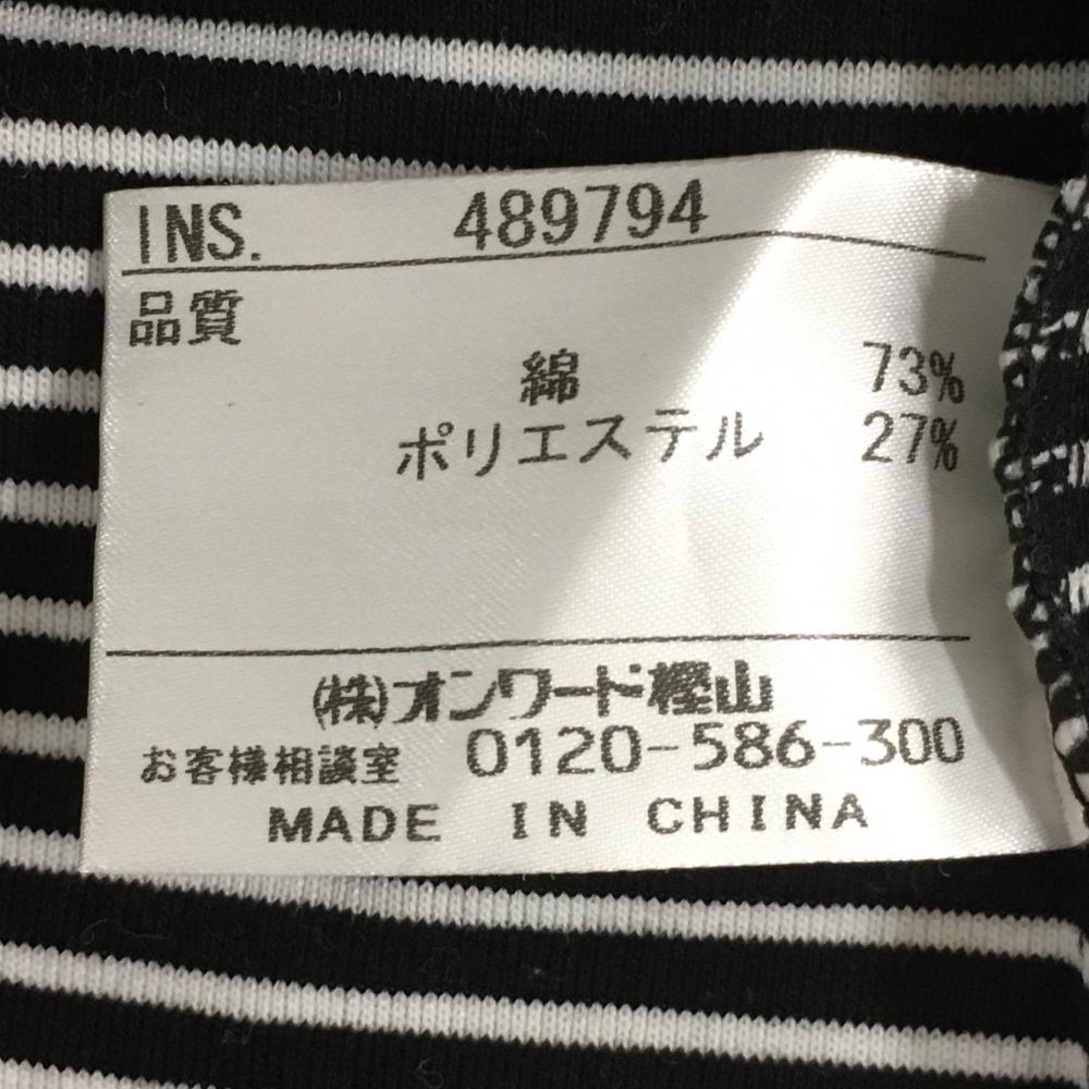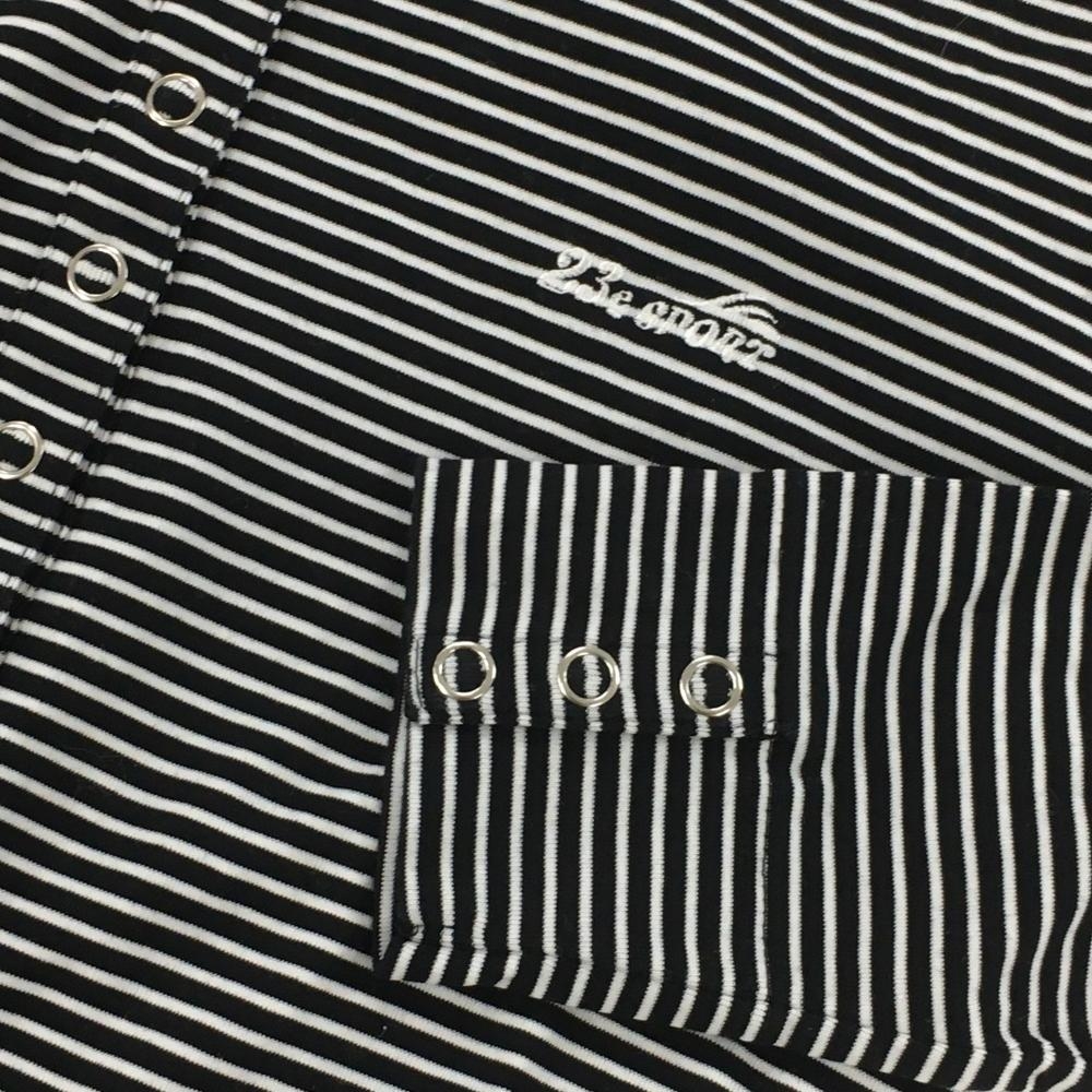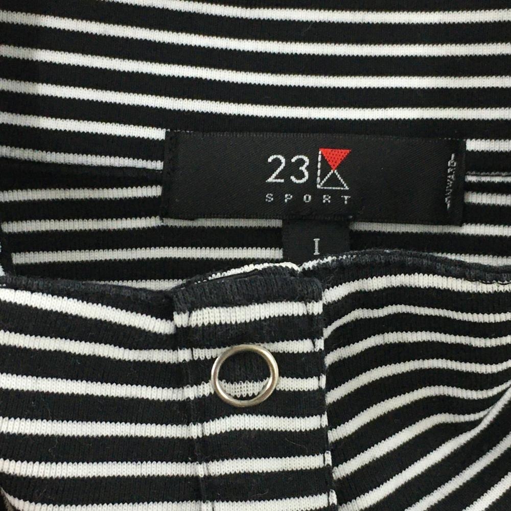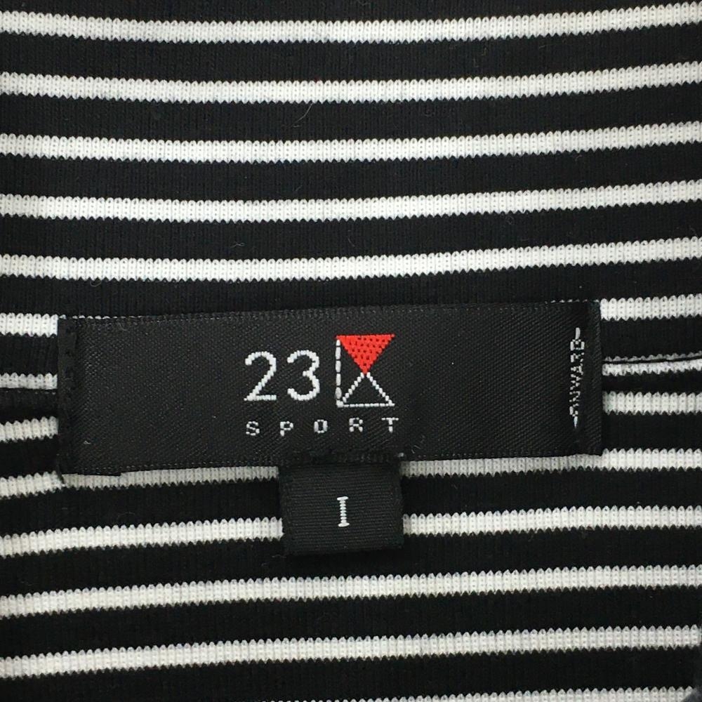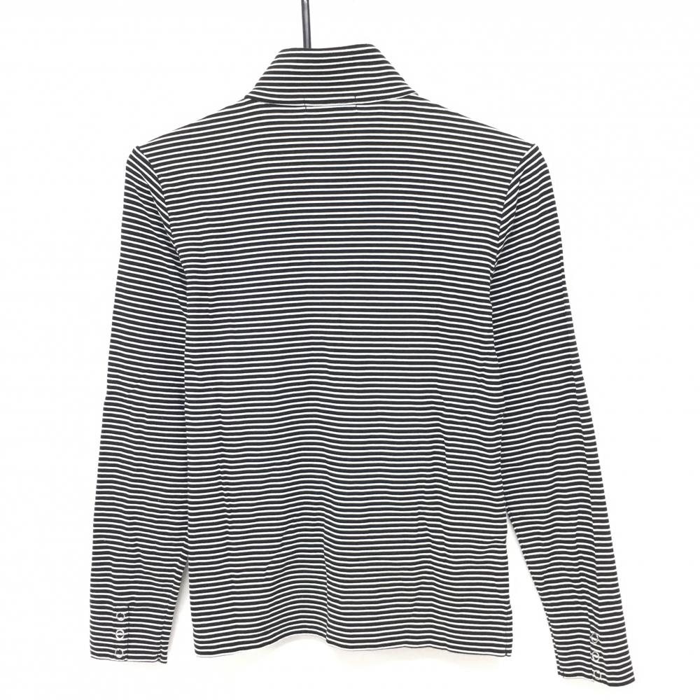 【美品】23区スポーツ 長袖ハイネックシャツ 黒×白 ボーダー スナップボタン ロゴ刺しゅう レディース I(M) ゴルフウェア 23区