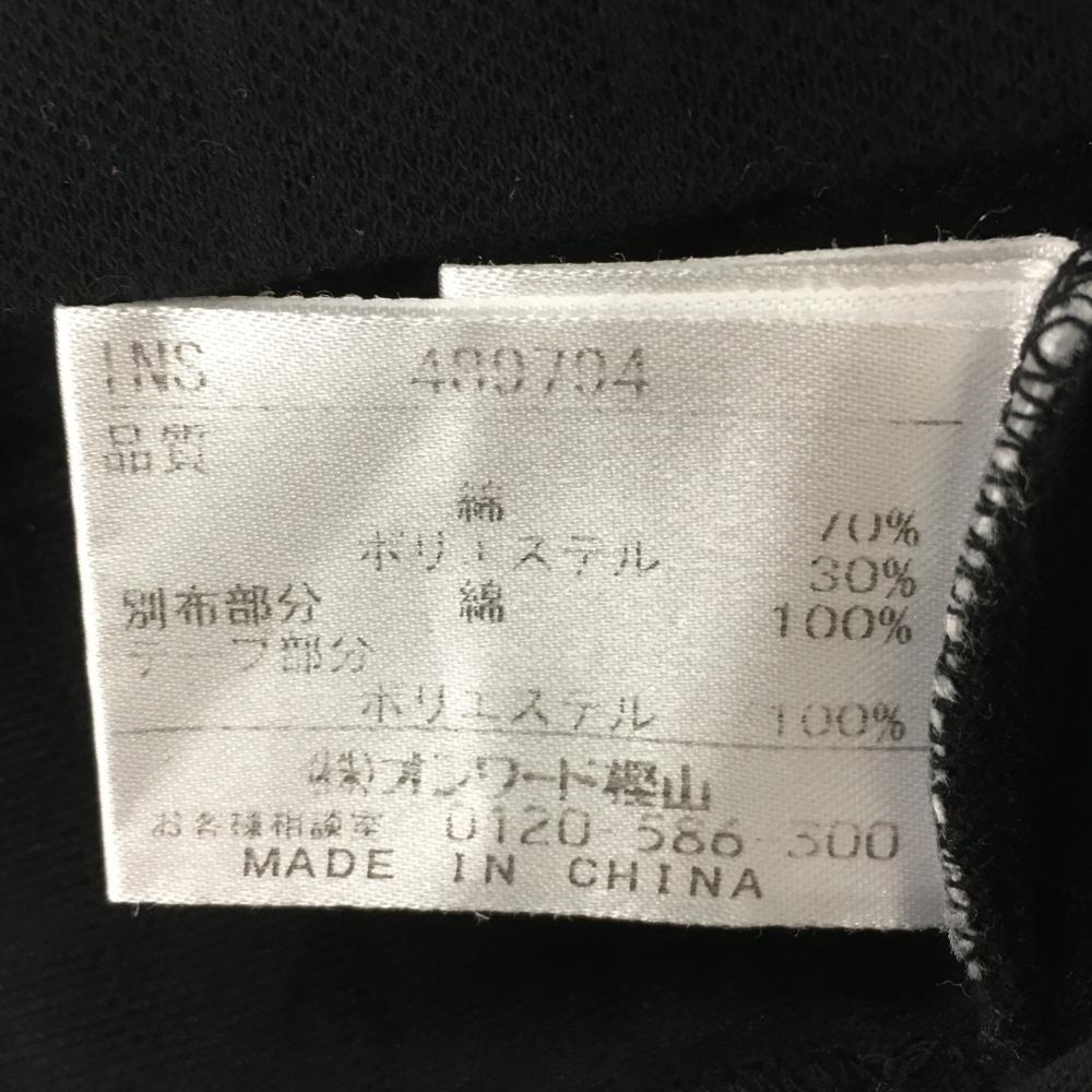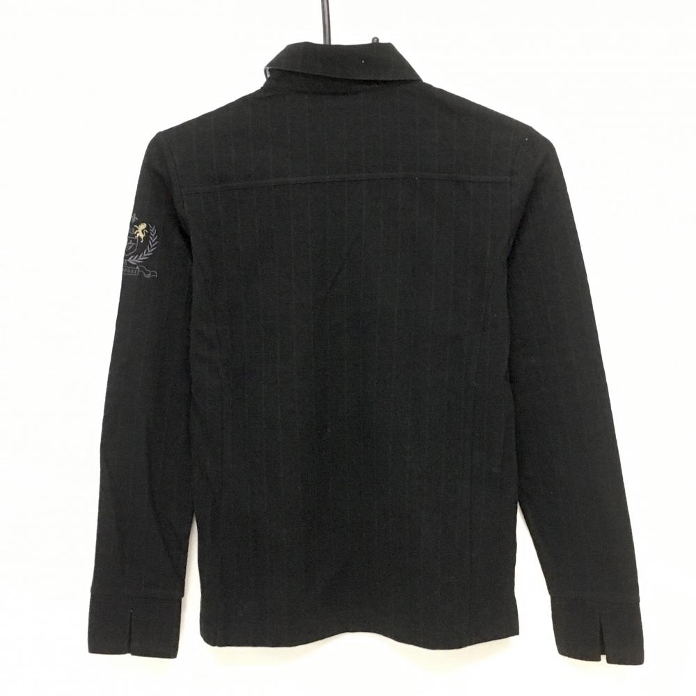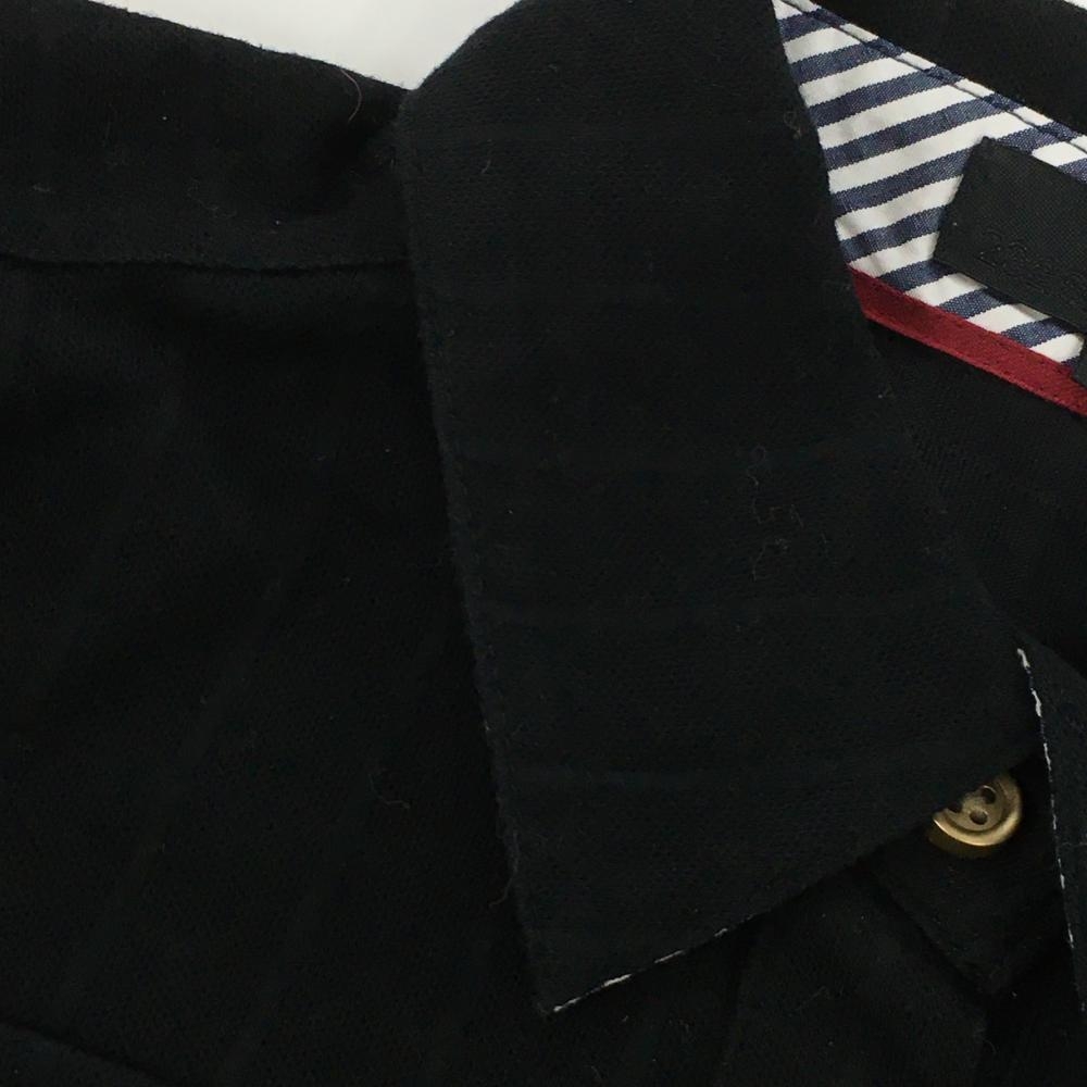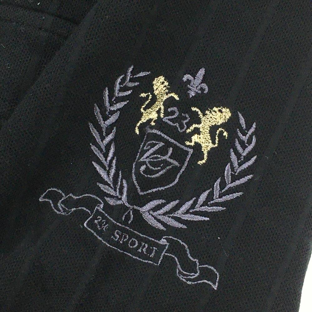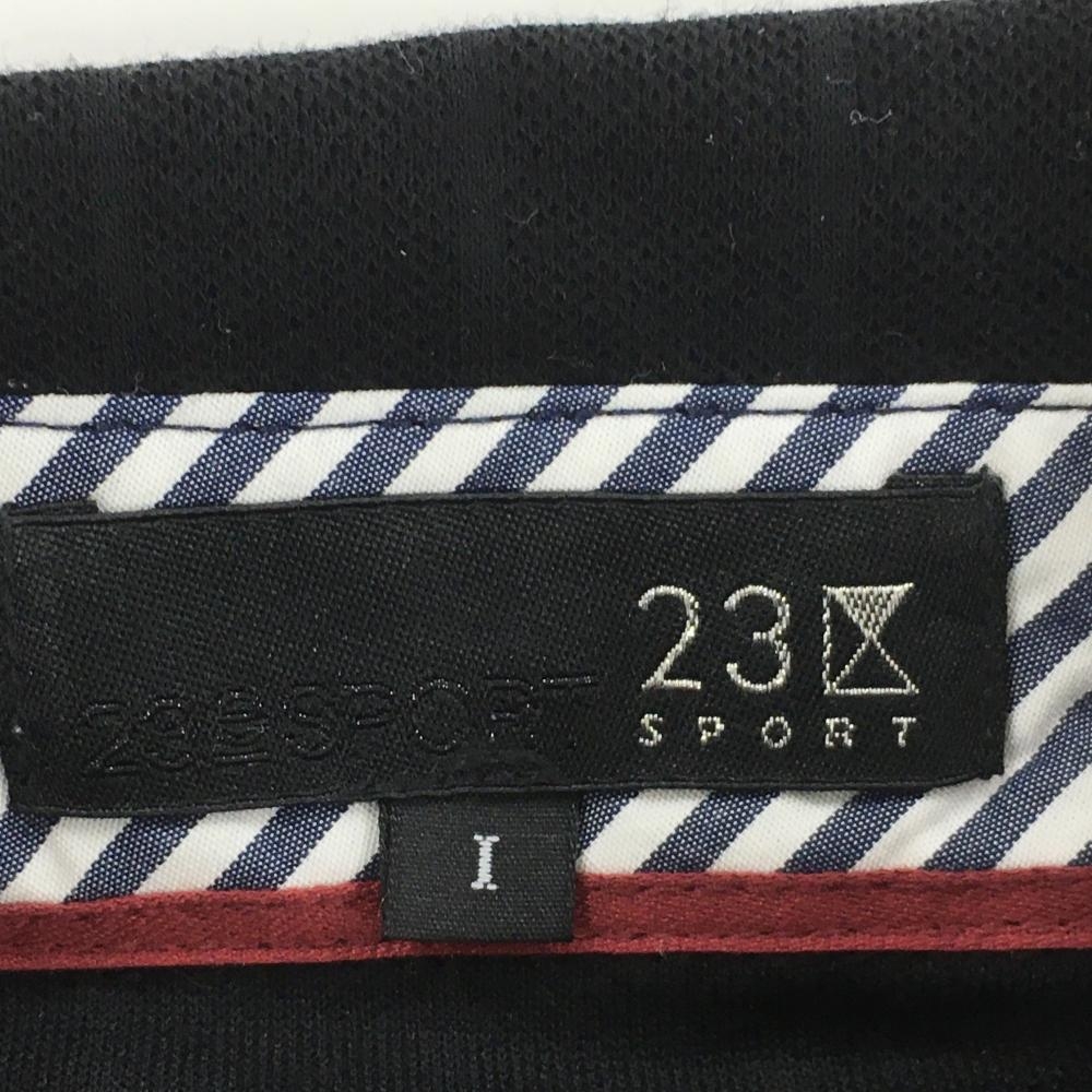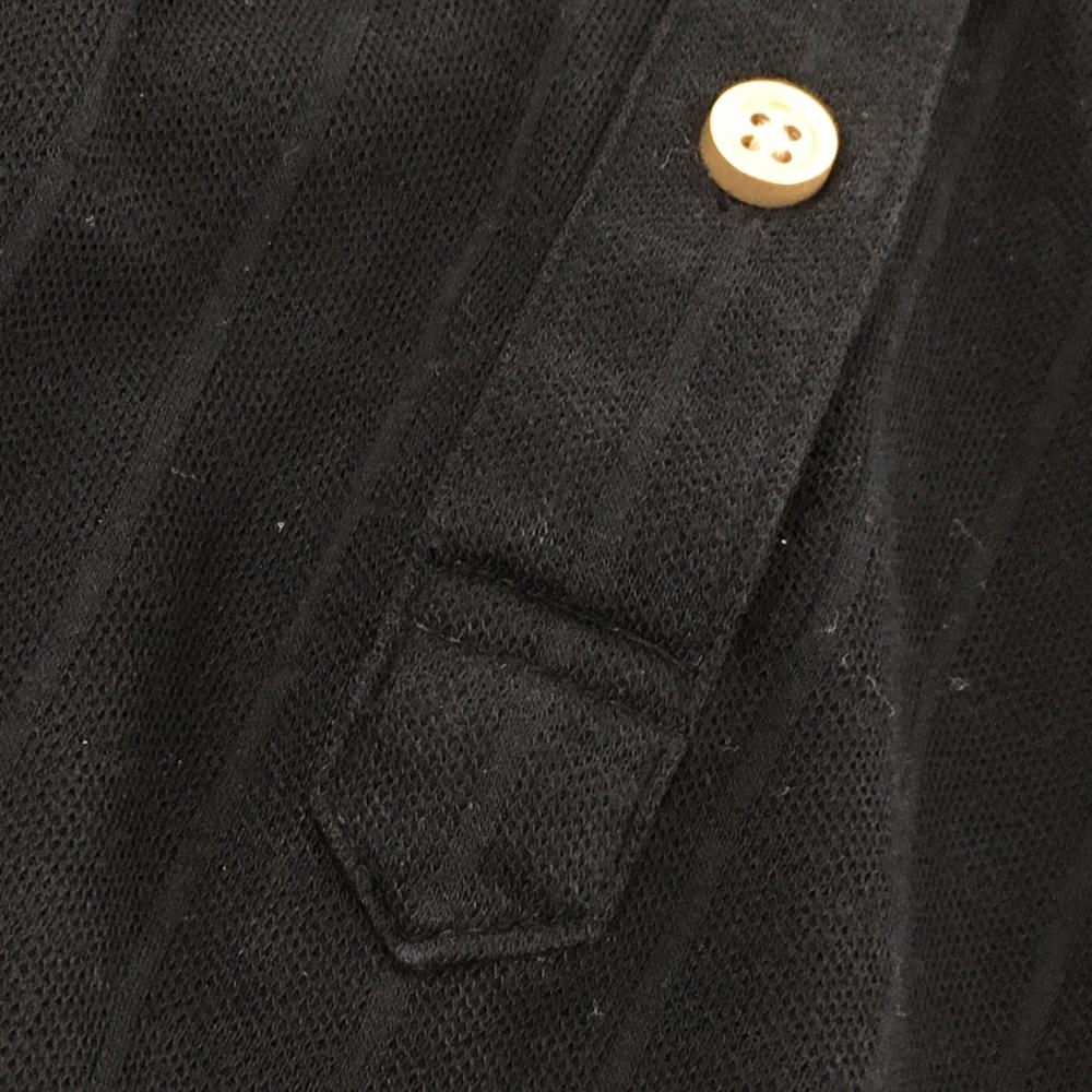 23区スポーツ 長袖ポロシャツ 黒 格子織生地 襟裏ボーダー 袖ロゴ刺しゅう 所々色褪せ レディース I(M) ゴルフウェア 23区