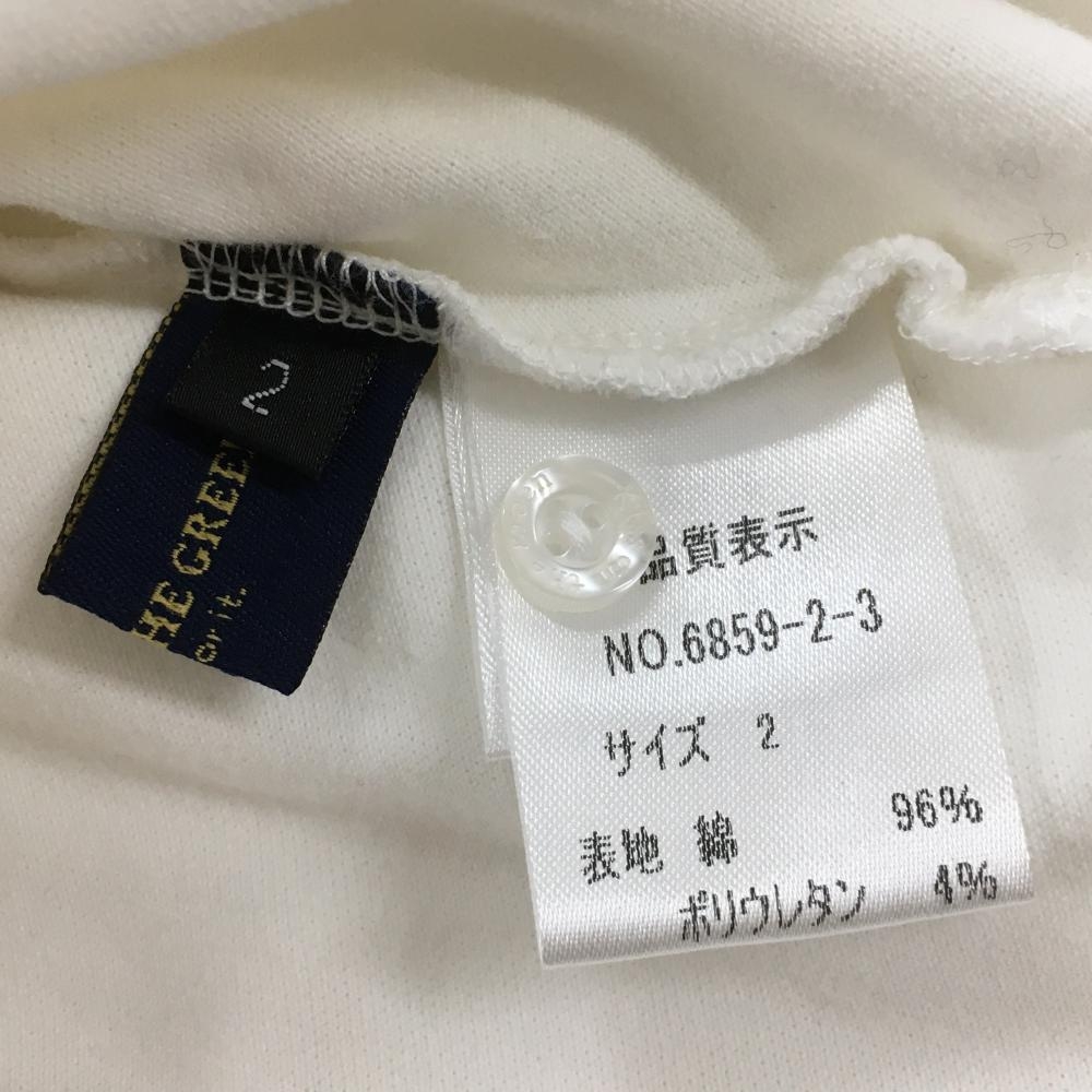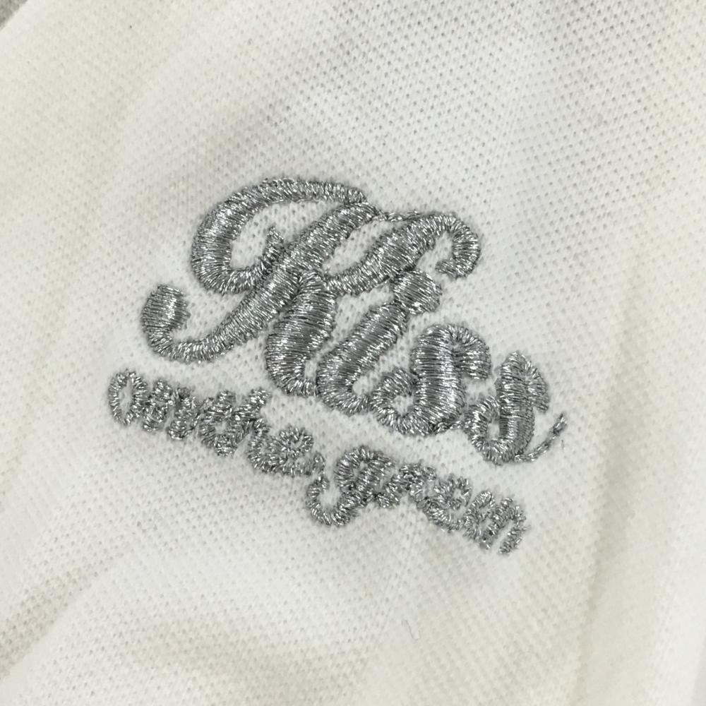 【美品】キスオンザグリーン 長袖シャツ 白 前面ピンタック・ピコレース 袖刺しゅう レディース 2(M) ゴルフウェア kiss on the green
