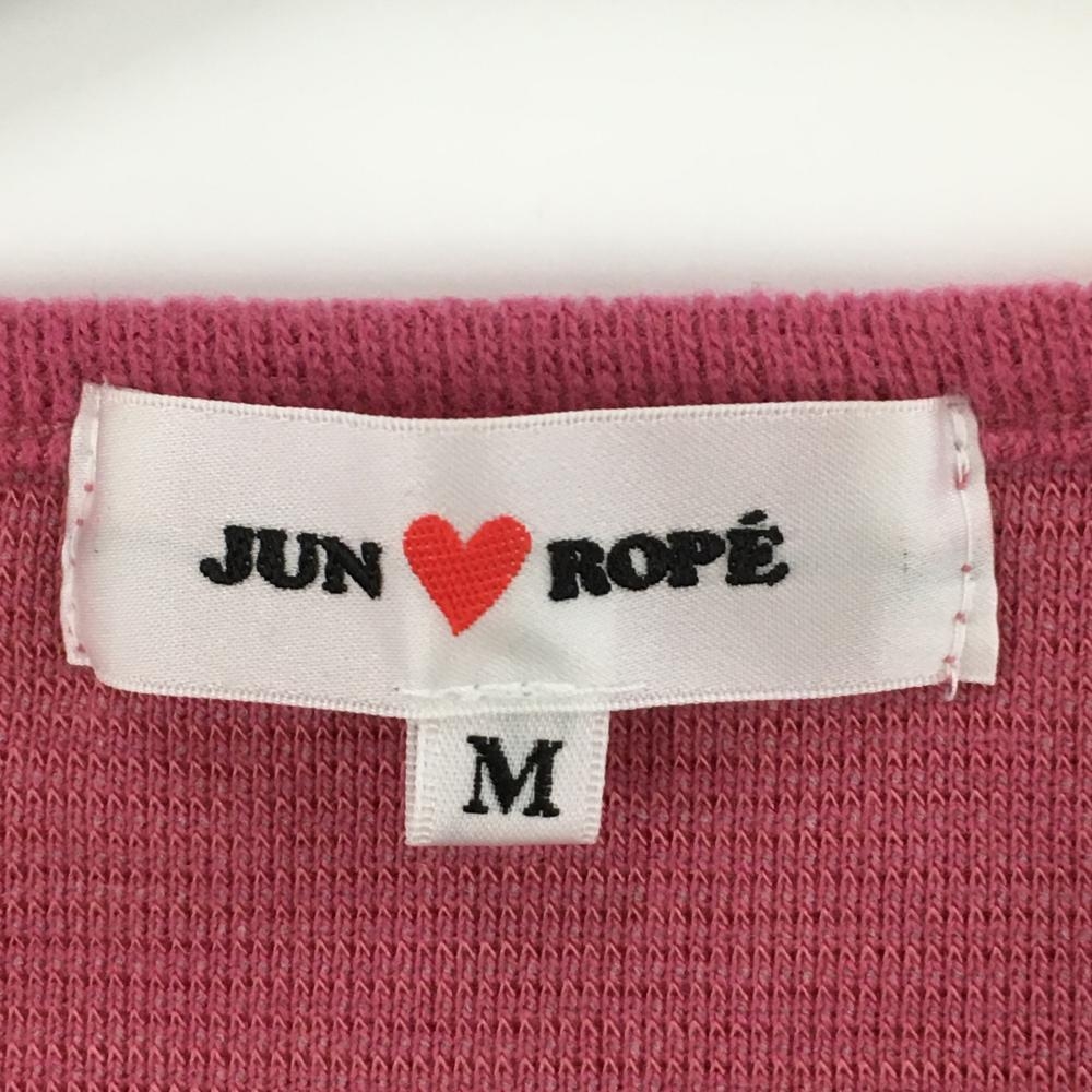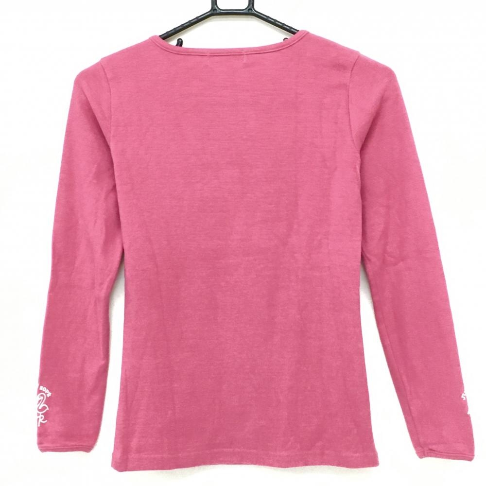 【美品】ジュンアンドロペ 長袖シャツ ピンク 表微起毛 袖ロゴ レディース M ゴルフウェア JUN&ROPE