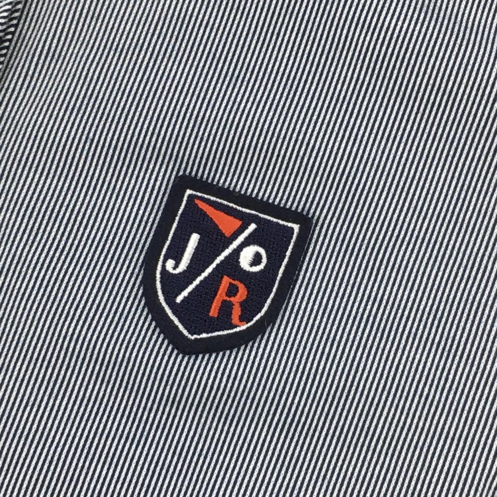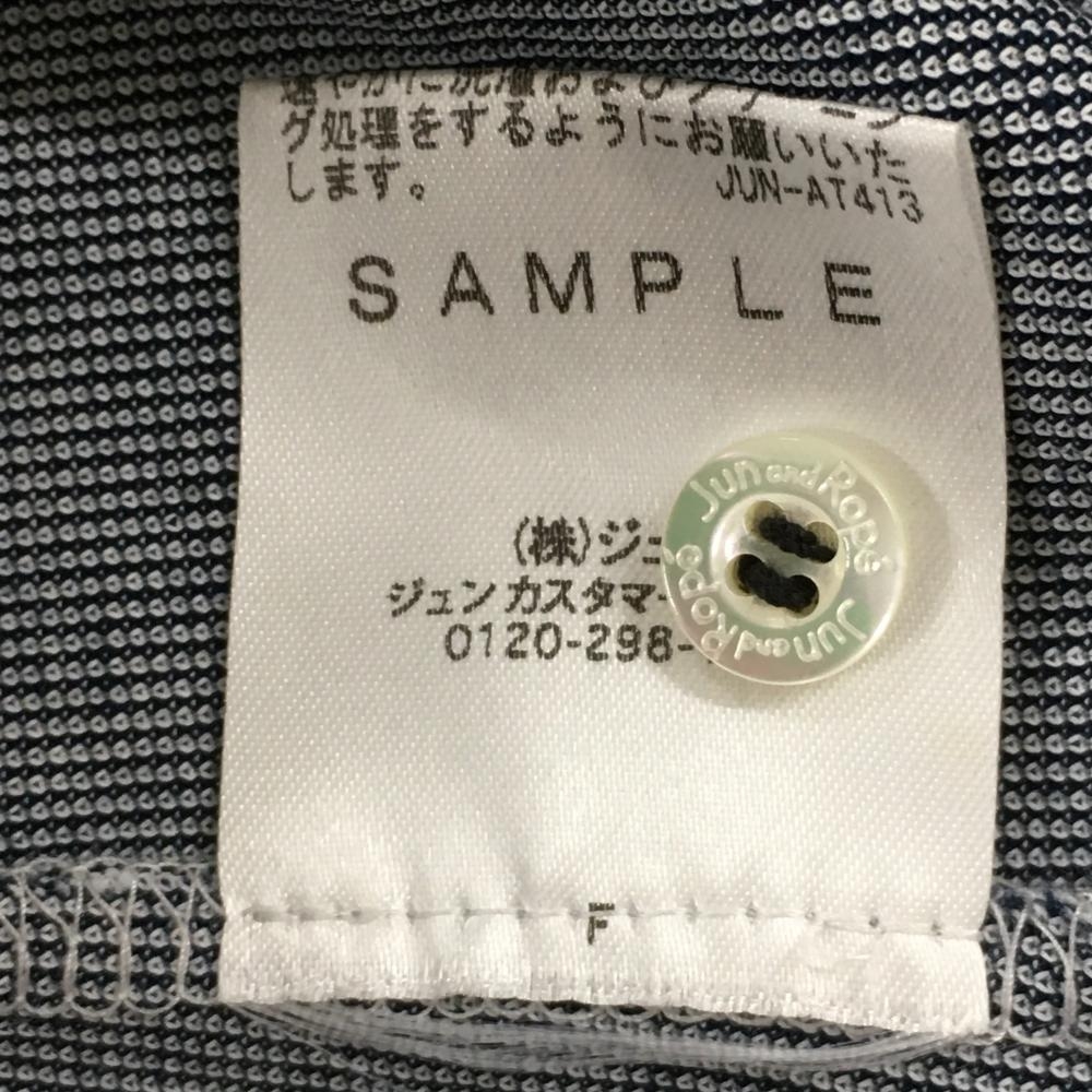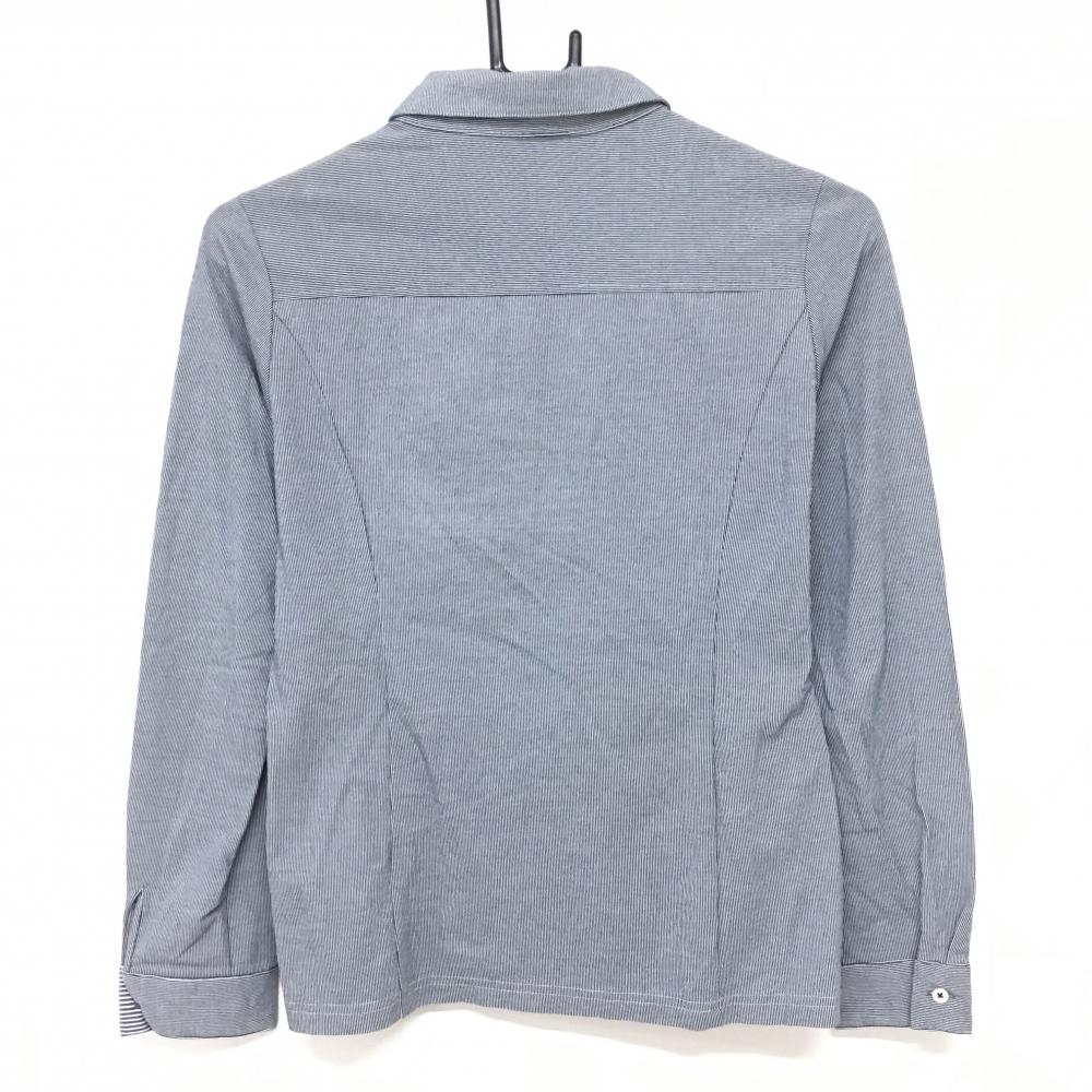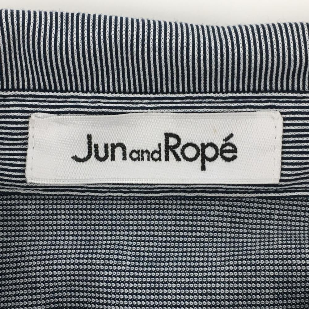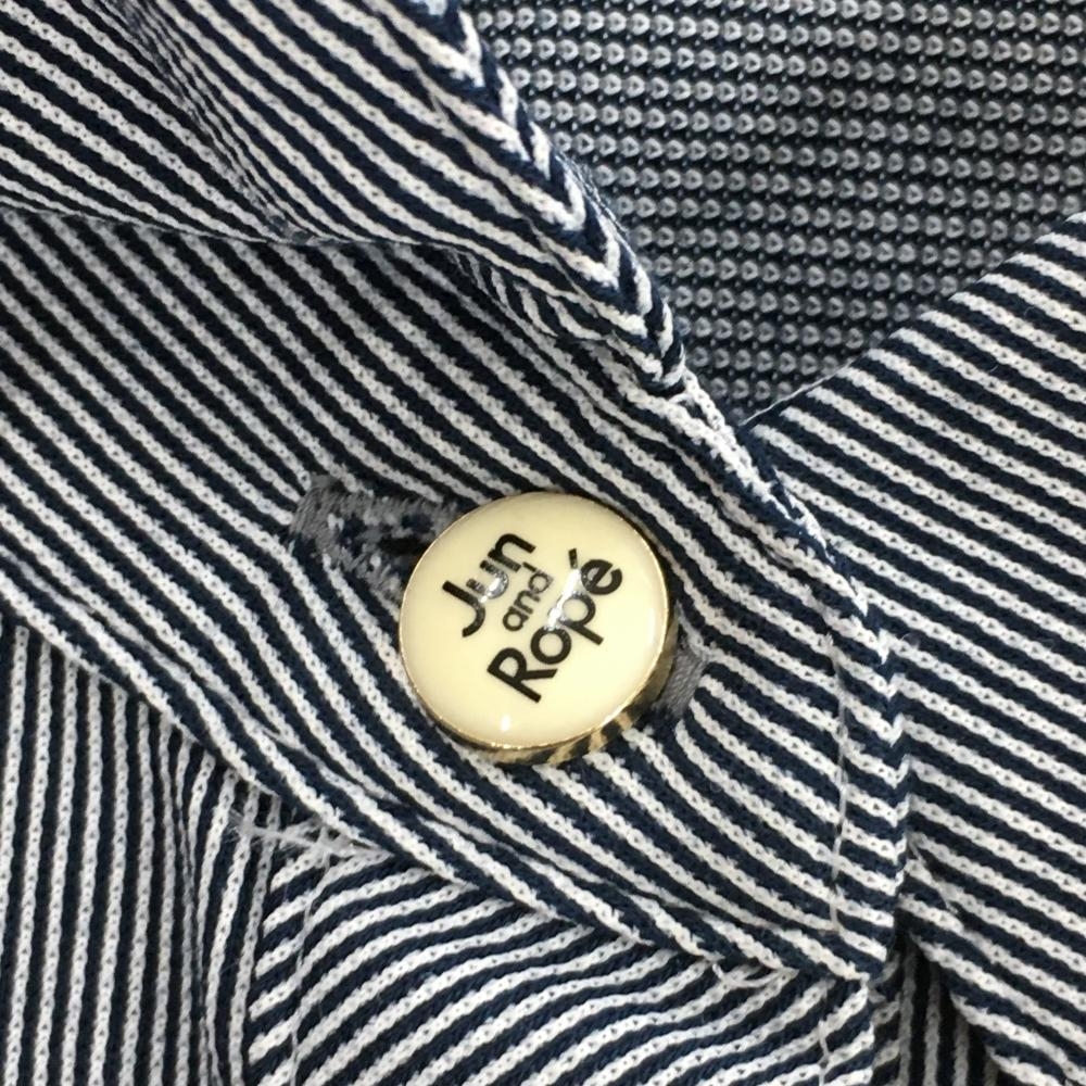 【超美品】ジュンアンドロペ 長袖ポロシャツ ネイビー×白 ストライプ柄 胸元ワッペン レディース ゴルフウェア サンプル品 JUN&ROPE