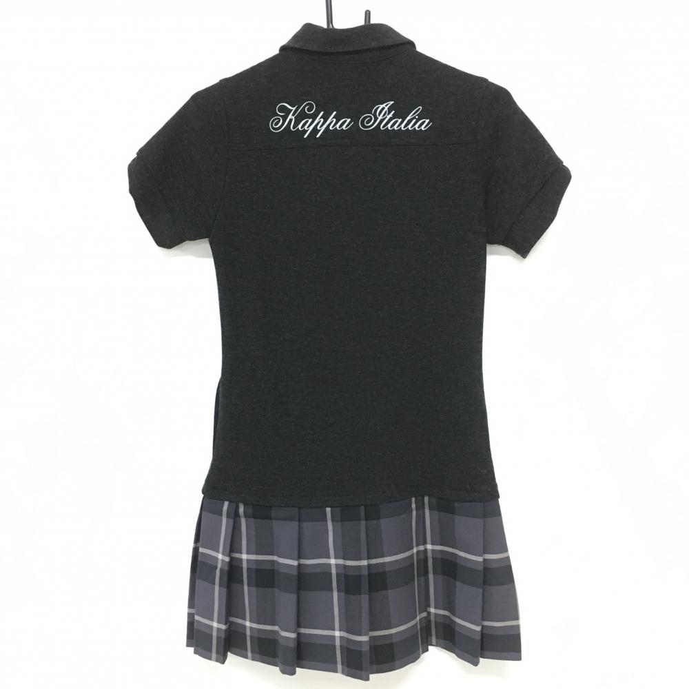 カッパ 半袖ポロワンピース ダークグレー×グレー スカートチェック柄 上身頃微起毛 レディース M ゴルフウェア Kappa