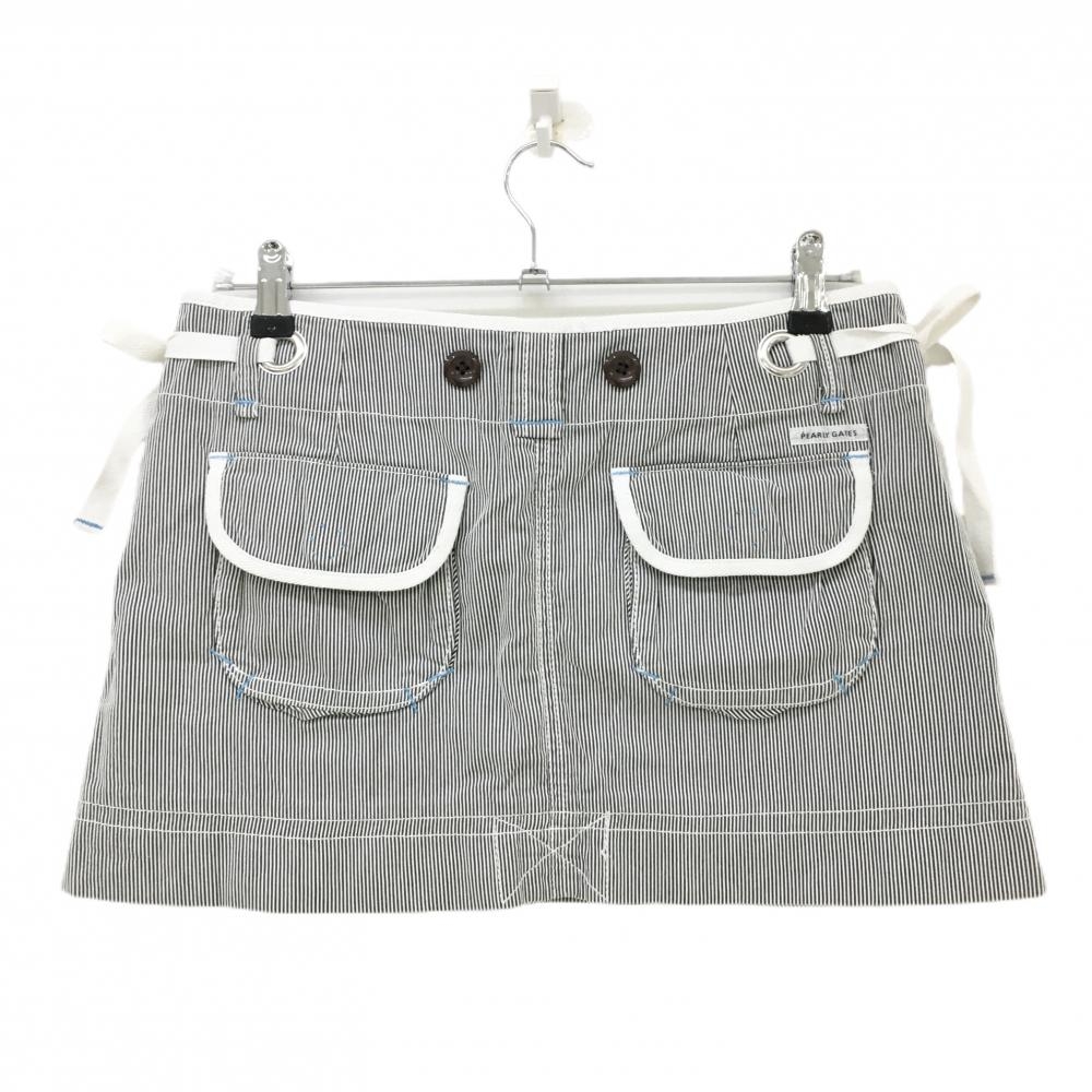 【美品】パーリーゲイツ スカート グレー×白 細ストライプ レディース 1(M) ゴルフウェア PEARLY GATES