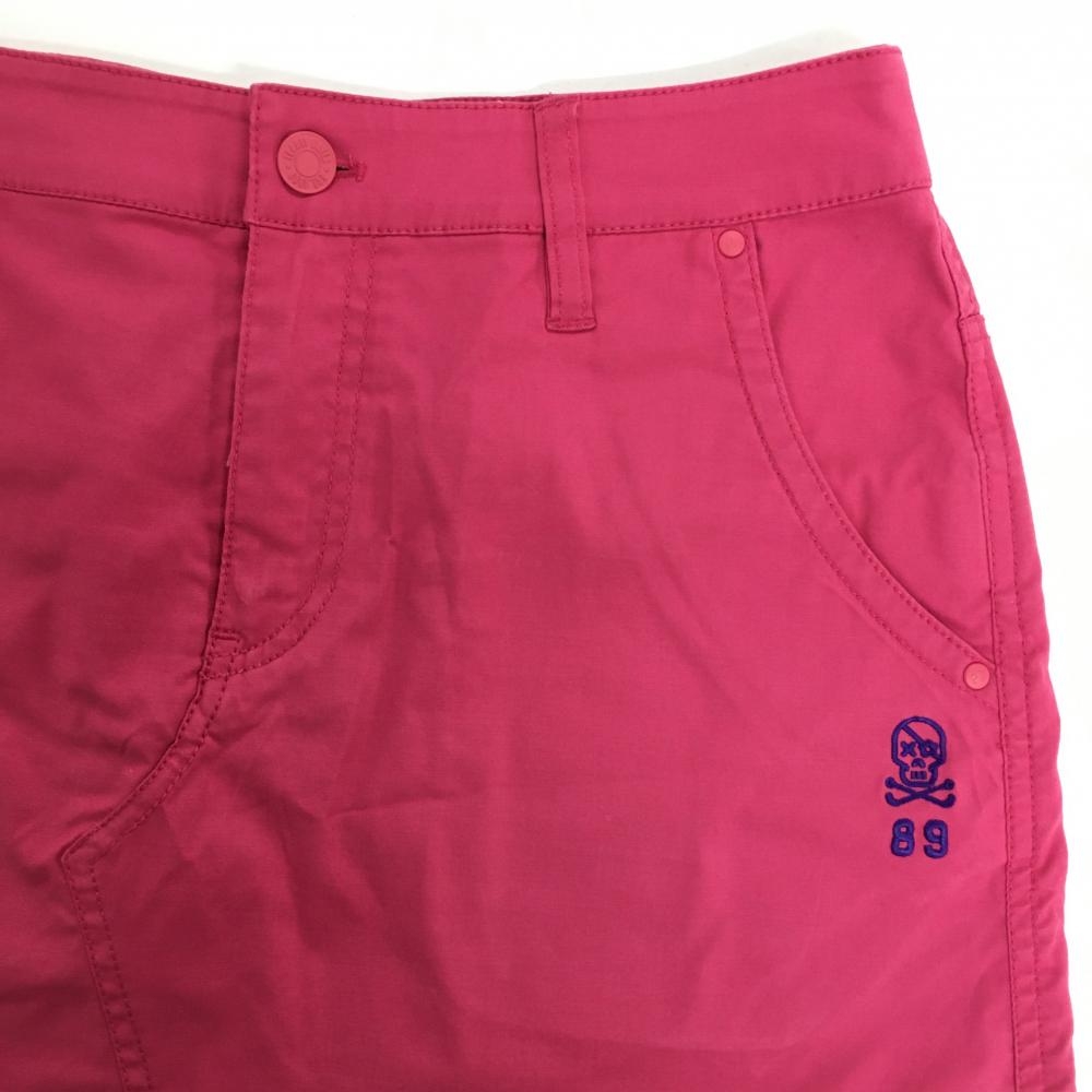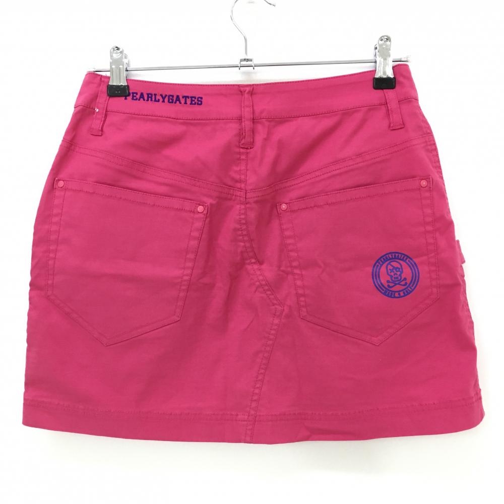 【美品】パーリーゲイツ スカート ピンク スカル刺しゅう コットン混 レディース 0(S) ゴルフウェア PEARLY GATES