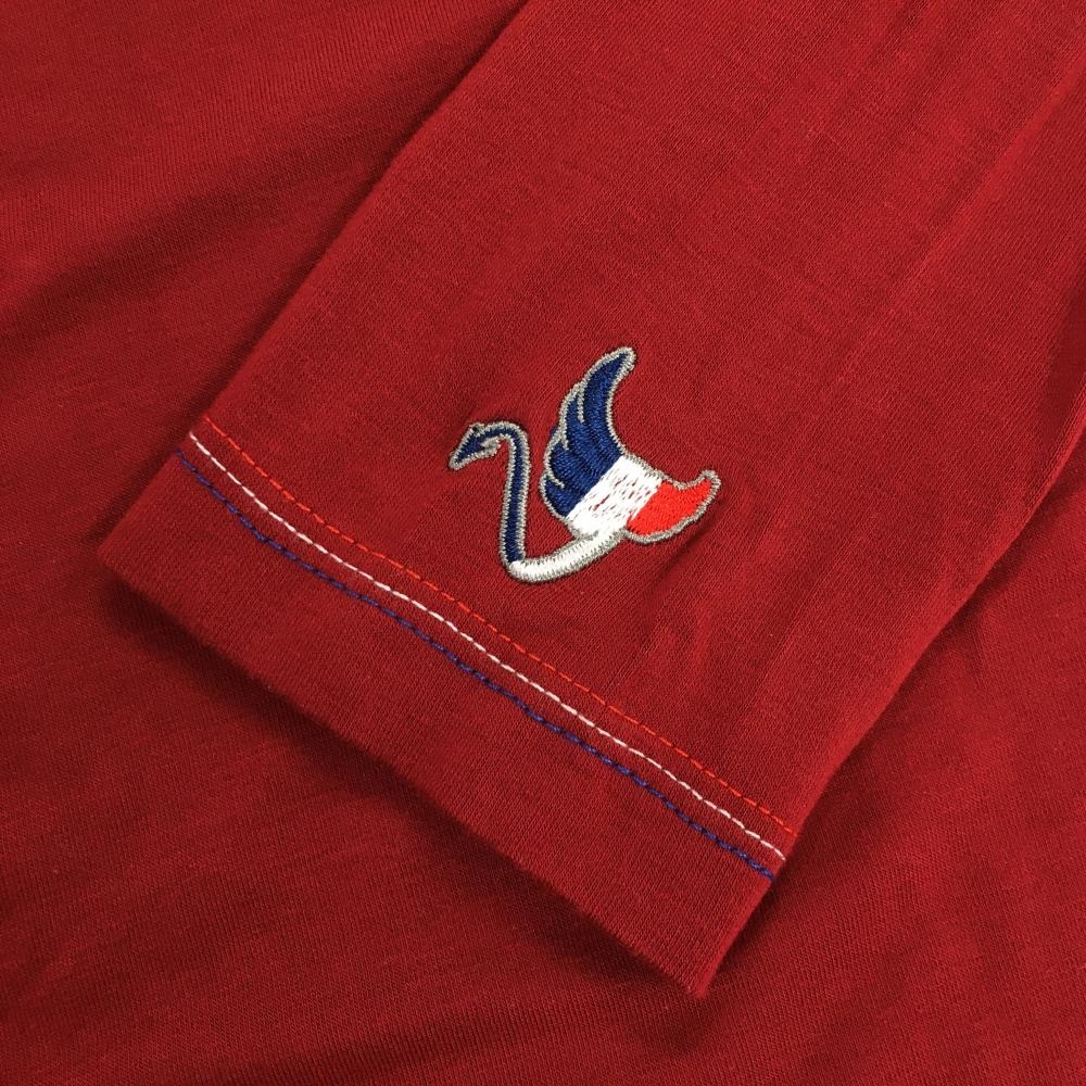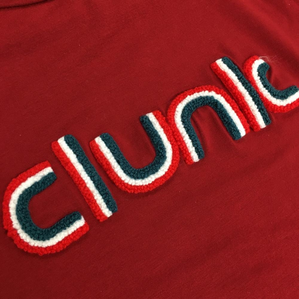 【美品】クランク 長袖ハイネックシャツ レッド ロゴパイル地 レディース L ゴルフウェア CLUNK