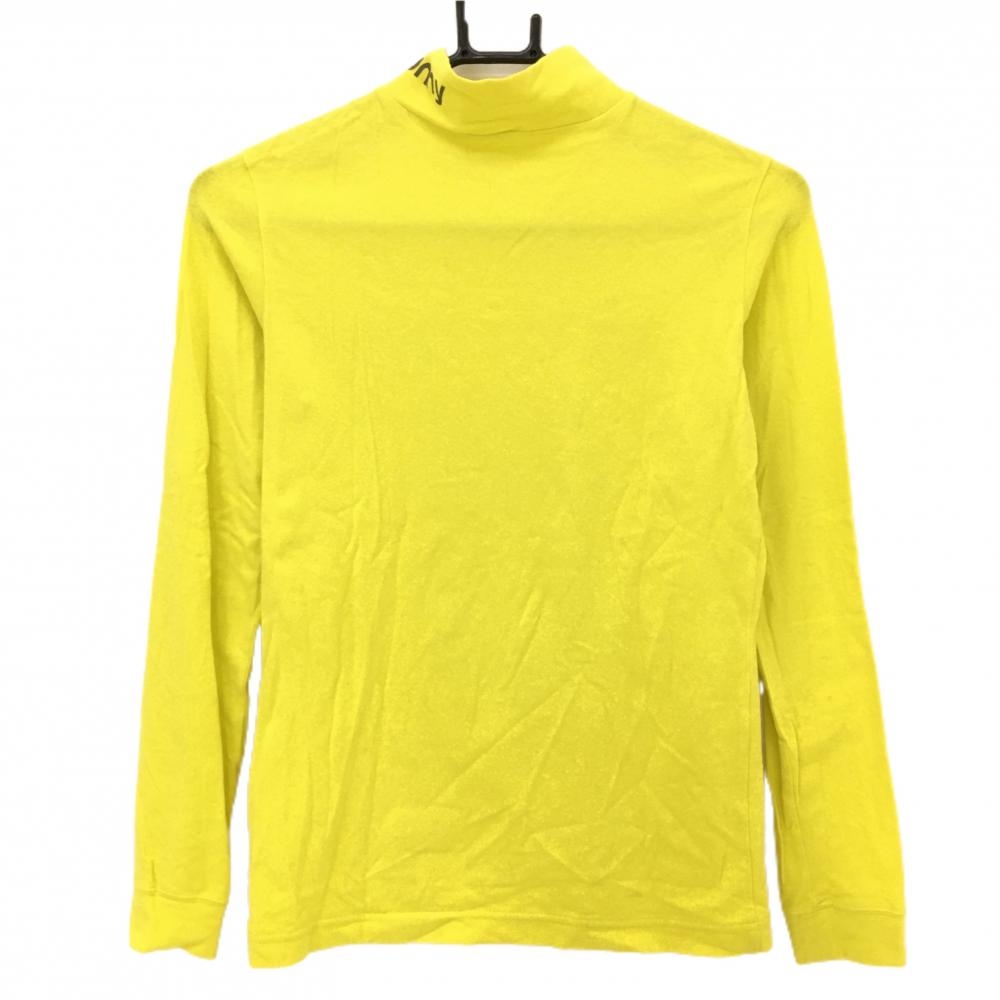 ジャックバニー 長袖ハイネックシャツ イエロー×ダークグレー 表微起毛 ロゴプリント レディース 0(S) ゴルフウェア Jack Bunny