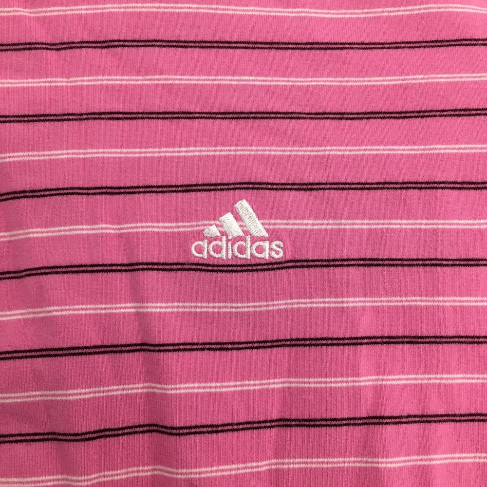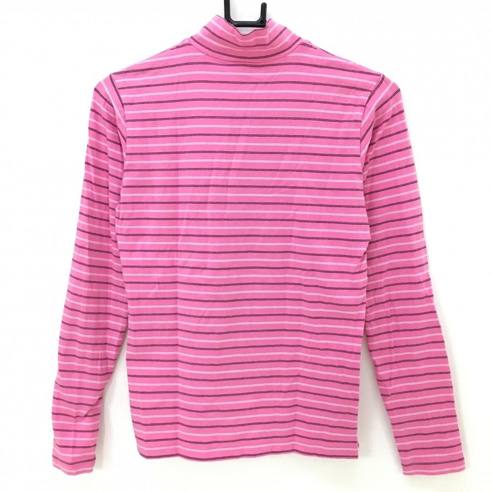 【美品】アディダス 長袖ハイネックシャツ ピンク×黒 ボーダー柄 ロゴ刺しゅう レディース S/P ゴルフウェア adidas