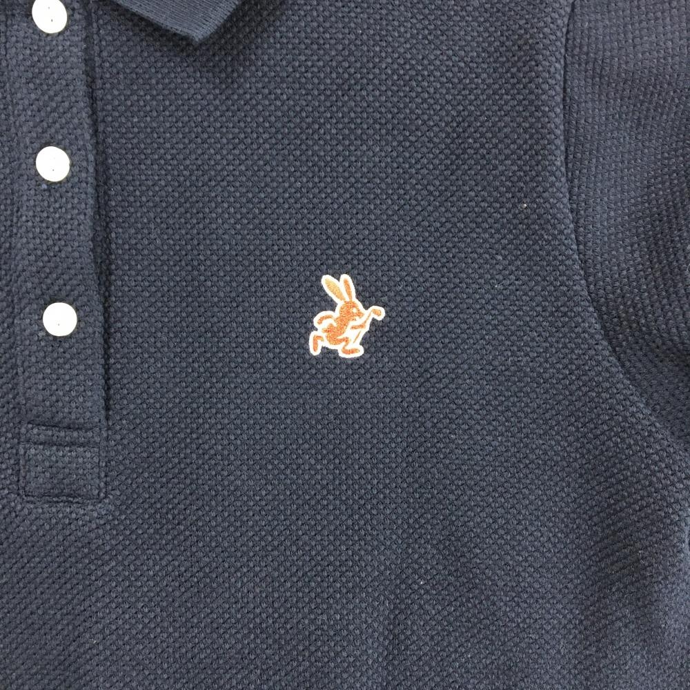 ジャックバニー 長袖ポロシャツ ネイビー 織生地 うさぎ刺しゅう レディース 2(L) ゴルフウェア Jack Bunny