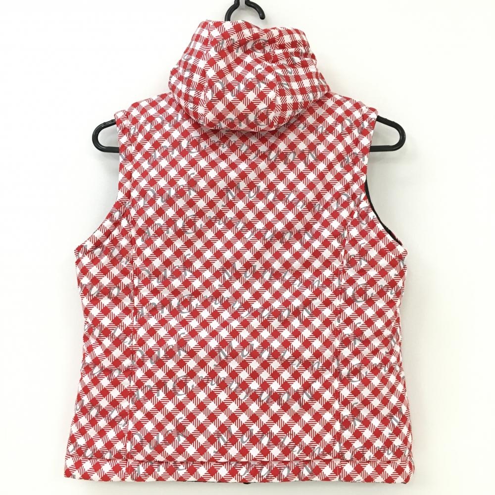 【美品】マンダリナダック 中綿リバーシブルベスト レッド×白 チェック 4WAY フード着脱可 レディース S ゴルフウェア MANDARINADUCK