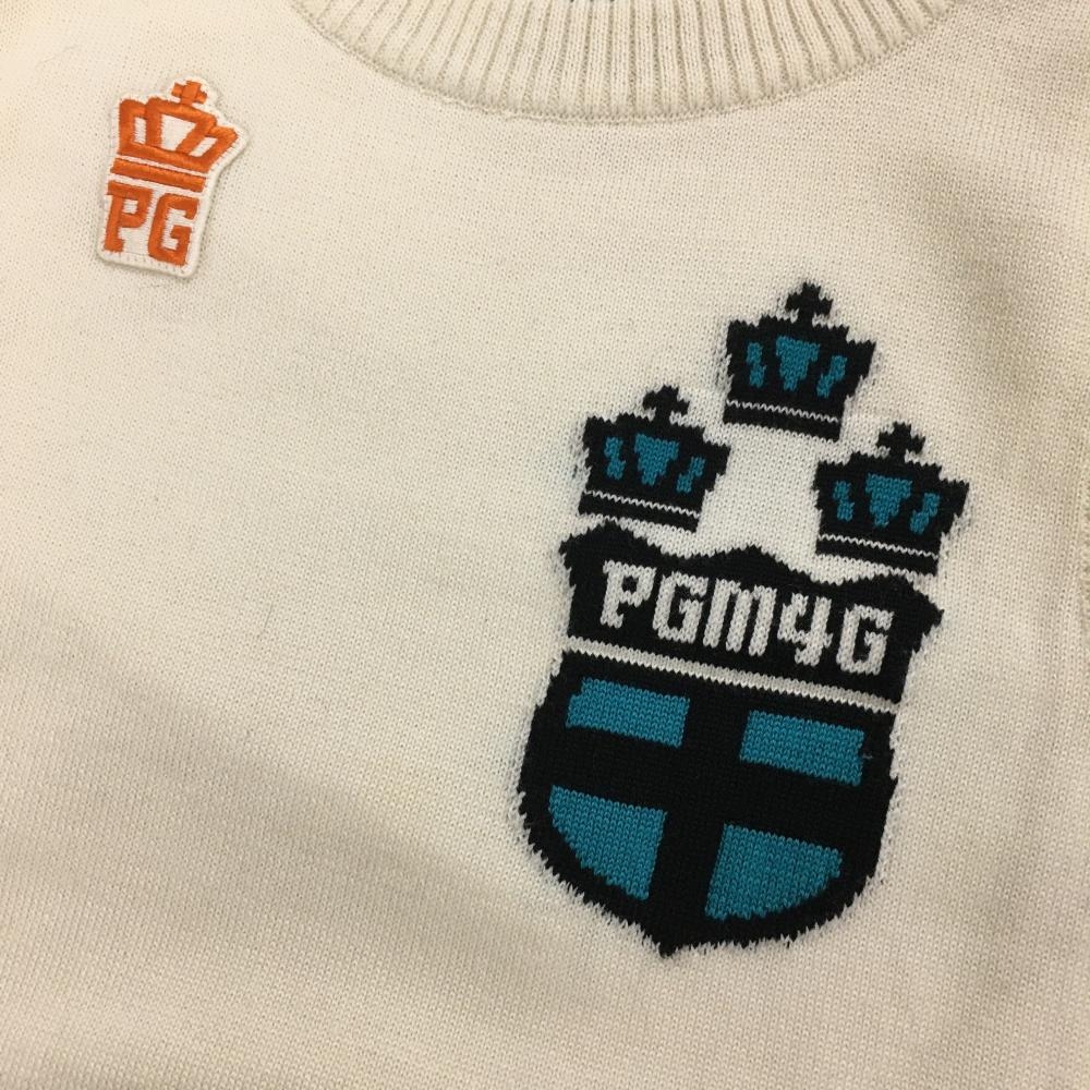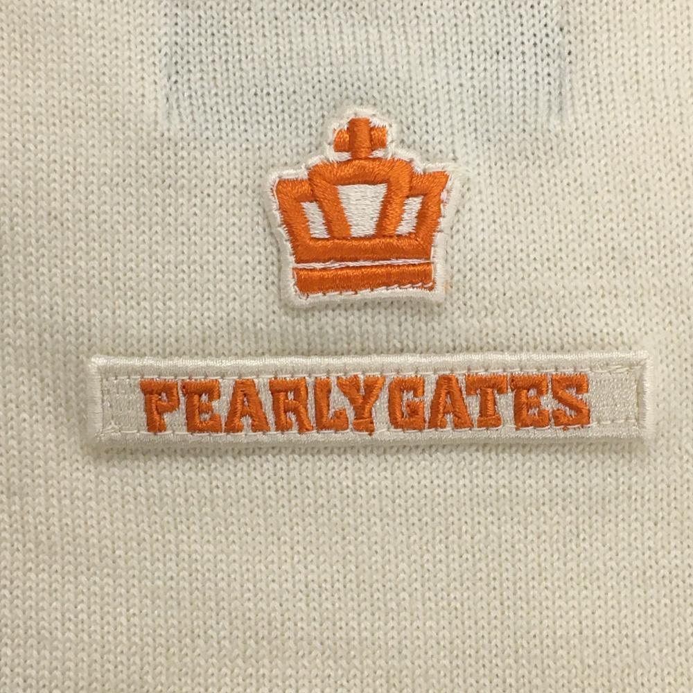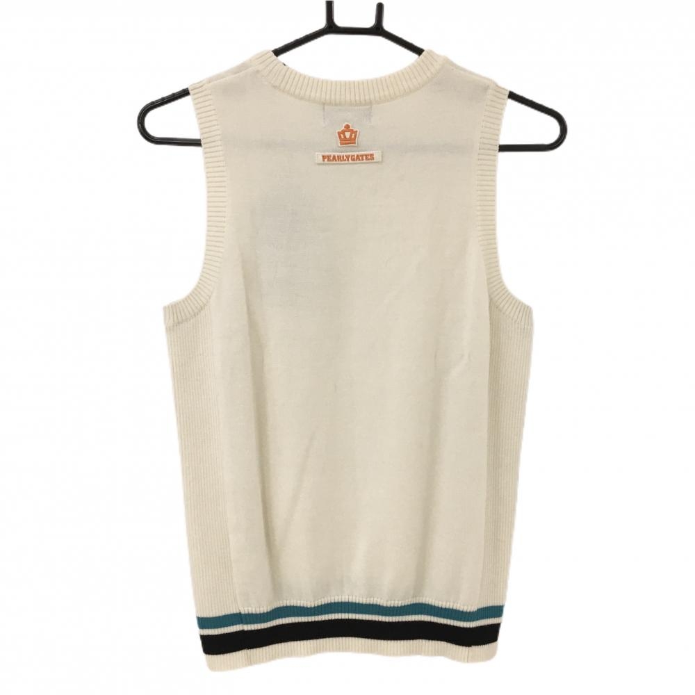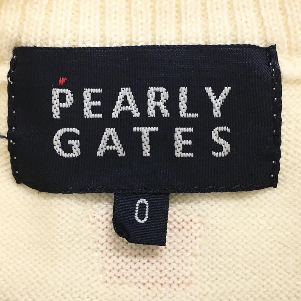 【美品】パーリーゲイツ ニットベスト 白×ブルー ウール混 レディース 0(S) ゴルフウェア PEARLY GATES