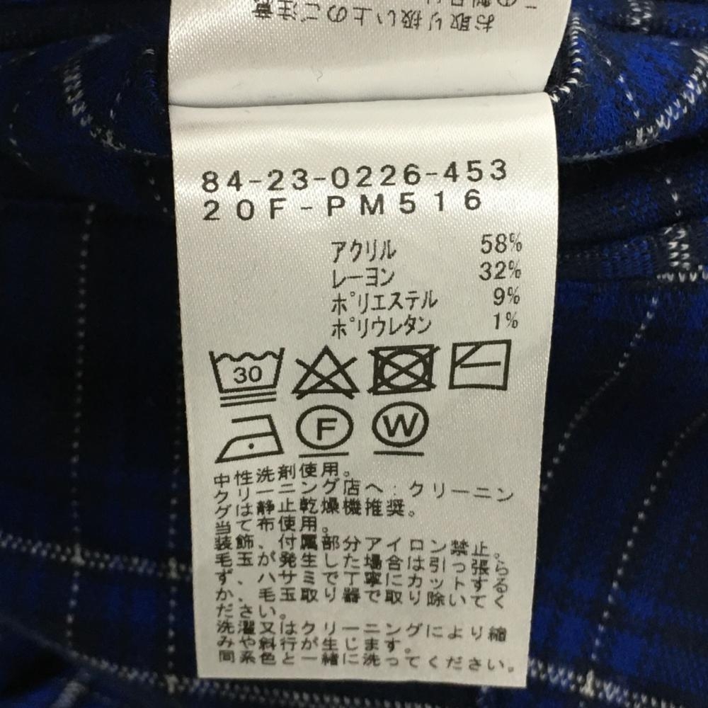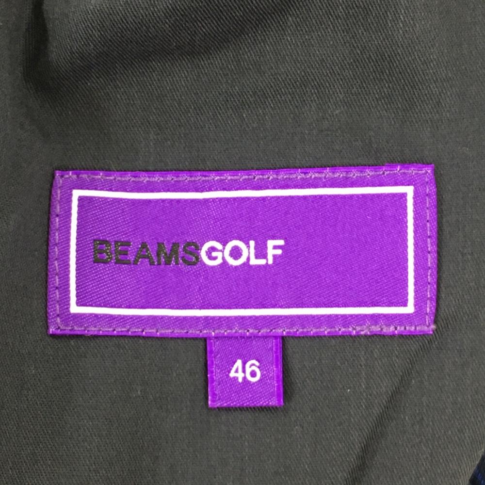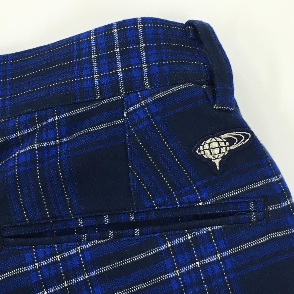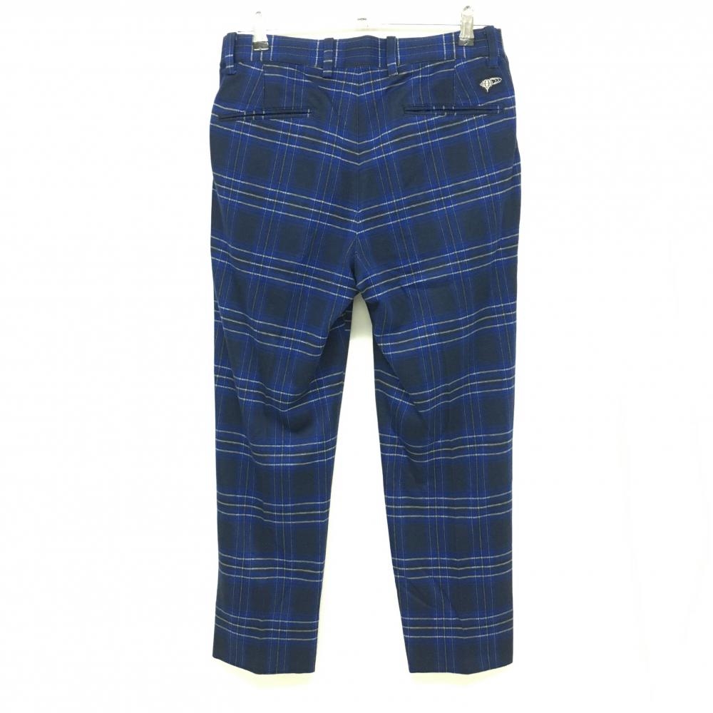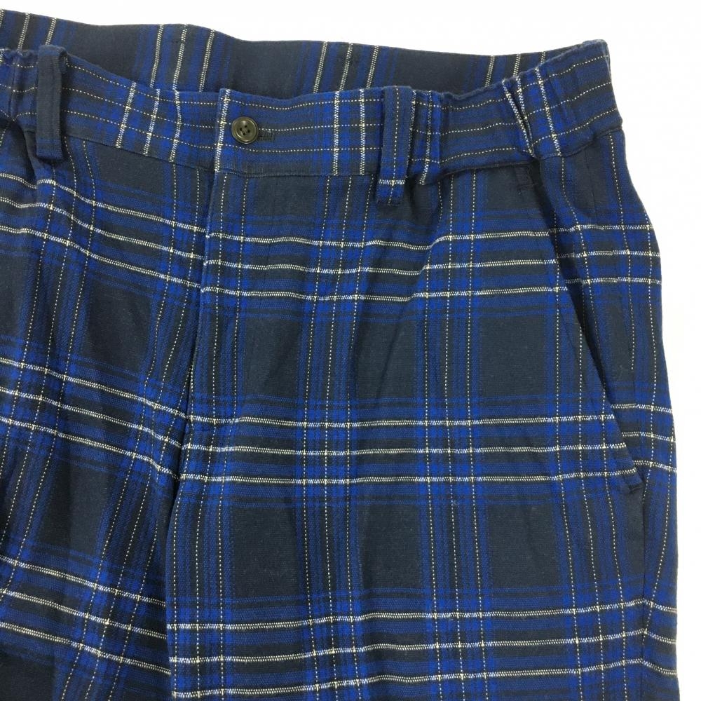 【美品】ビームスゴルフ パンツ ネイビー×ブルー チェック柄 表微起毛 バックロゴワッペン メンズ 46 ゴルフウェア BEAMS GOLF