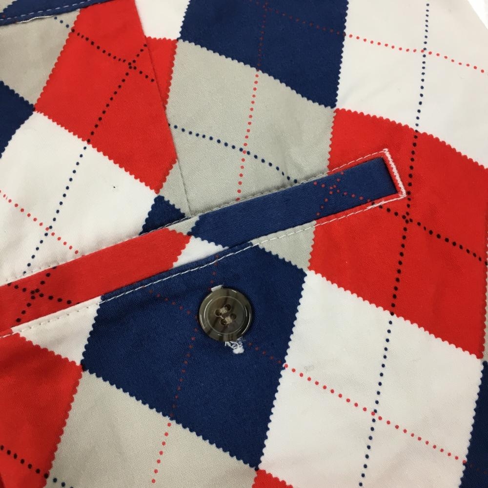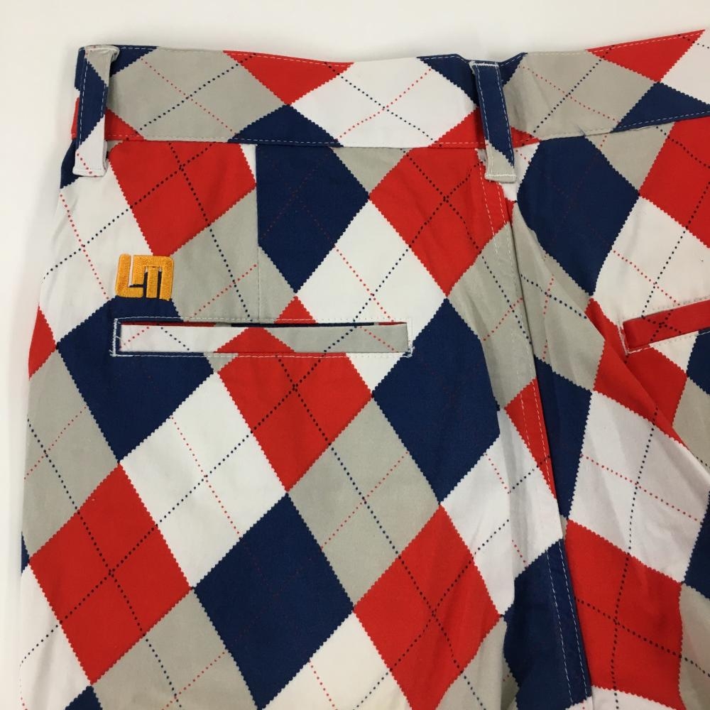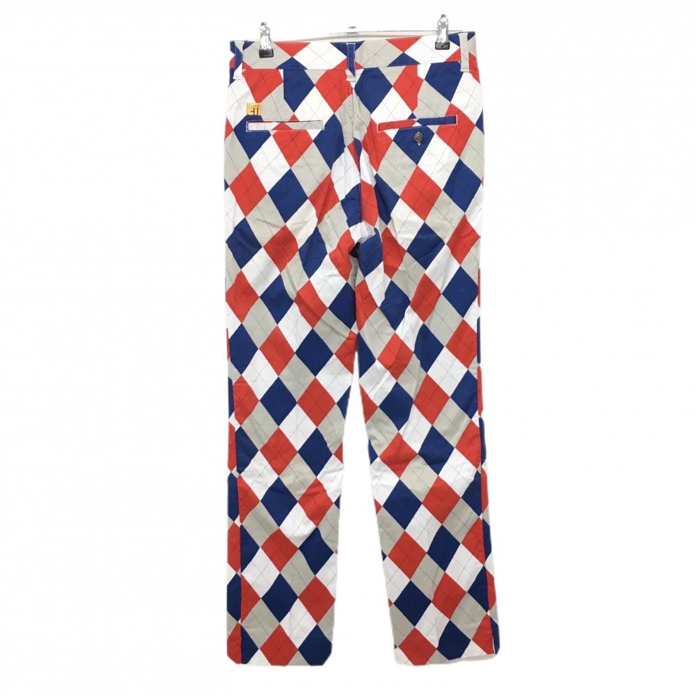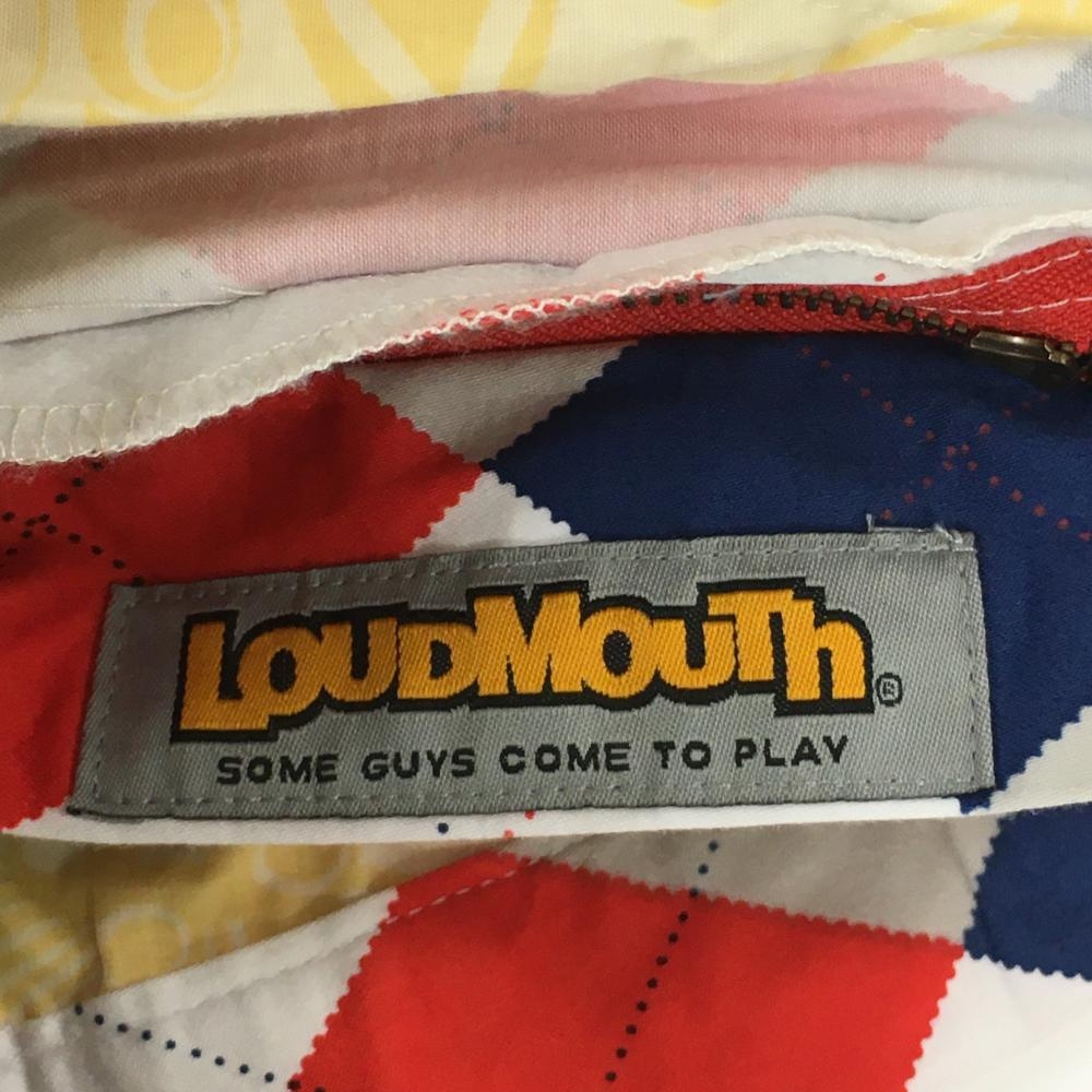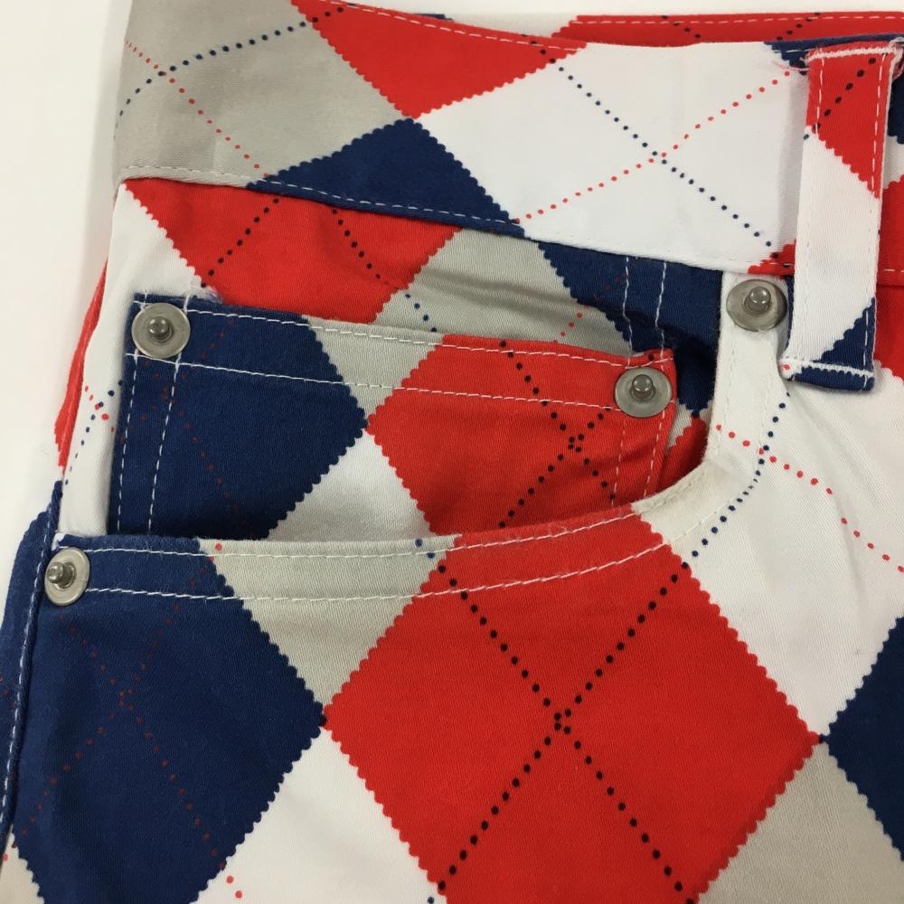 ラウドマウス パンツ 白×ブルー×レッド アーガイル柄 ヒップ汚れ、色褪せ メンズ ゴルフウェア LOUDMOUTH