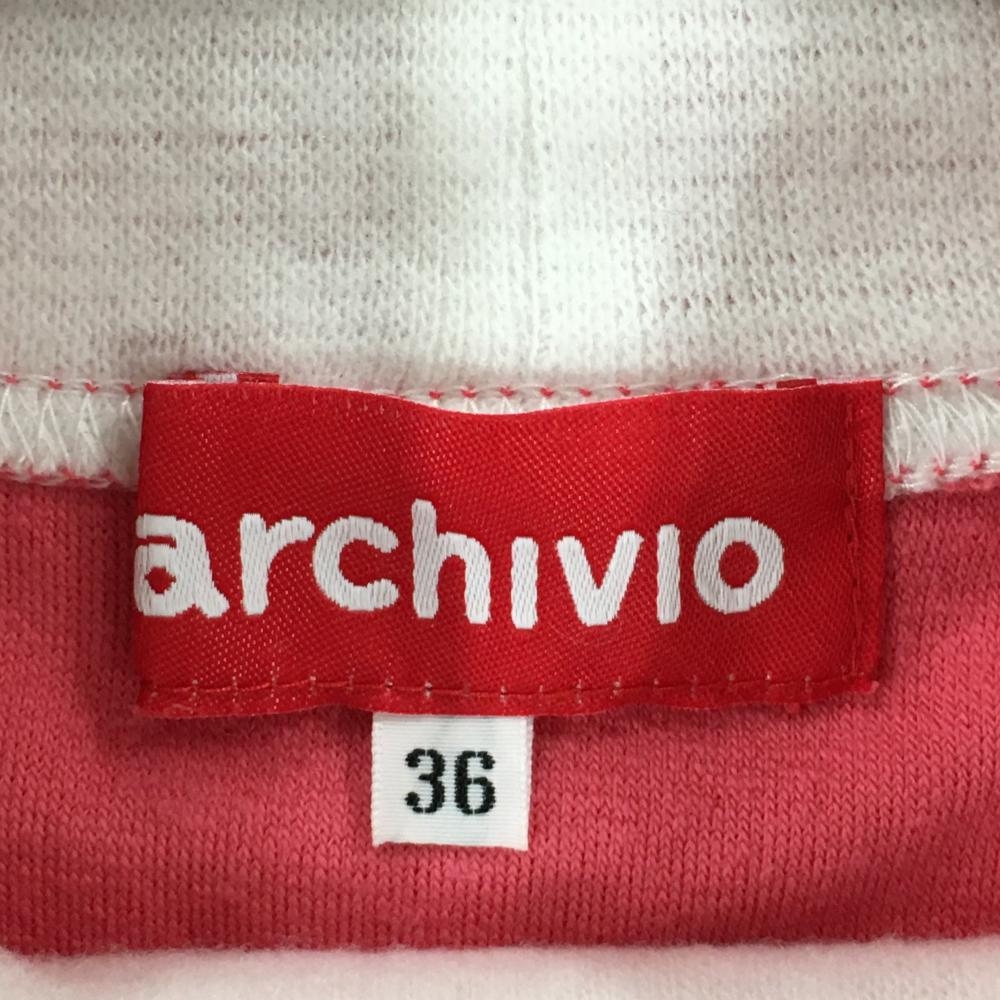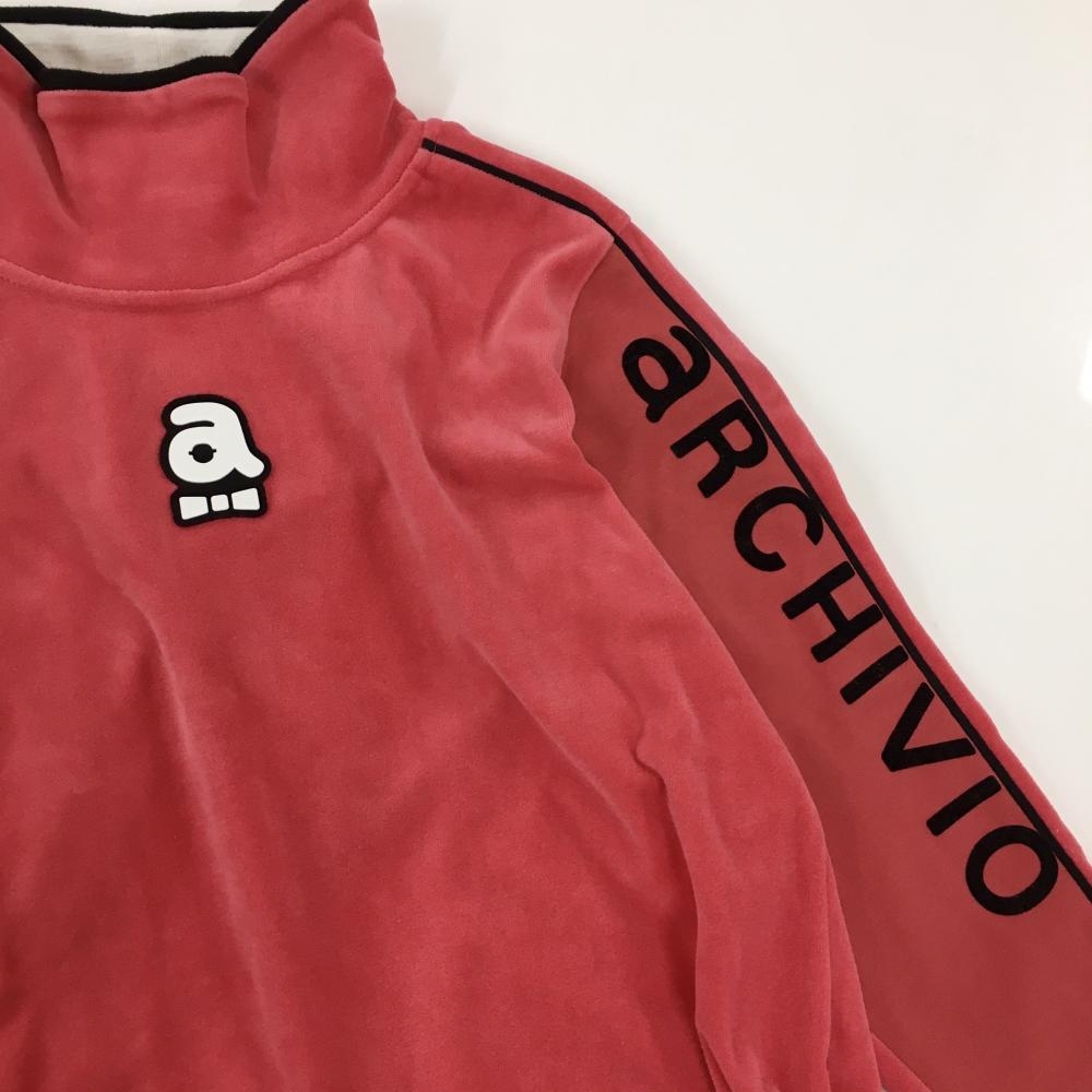 【超美品】アルチビオ 長袖ハイネックシャツ ピンク×黒 起毛素材 袖ロゴ レディース 36(S) ゴルフウェア 2023年モデル archivio