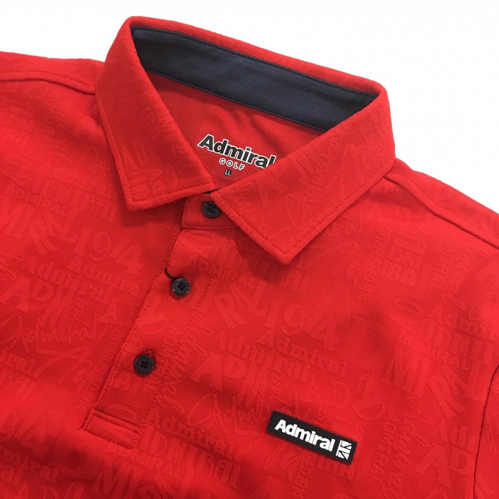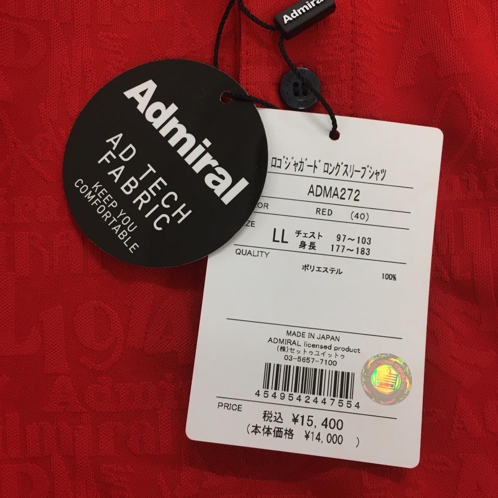 【新品】アドミラル 長袖ポロシャツ レッド ロゴ総柄織生地 UVカット メンズ LL ゴルフウェア Admiral