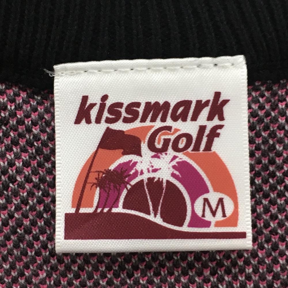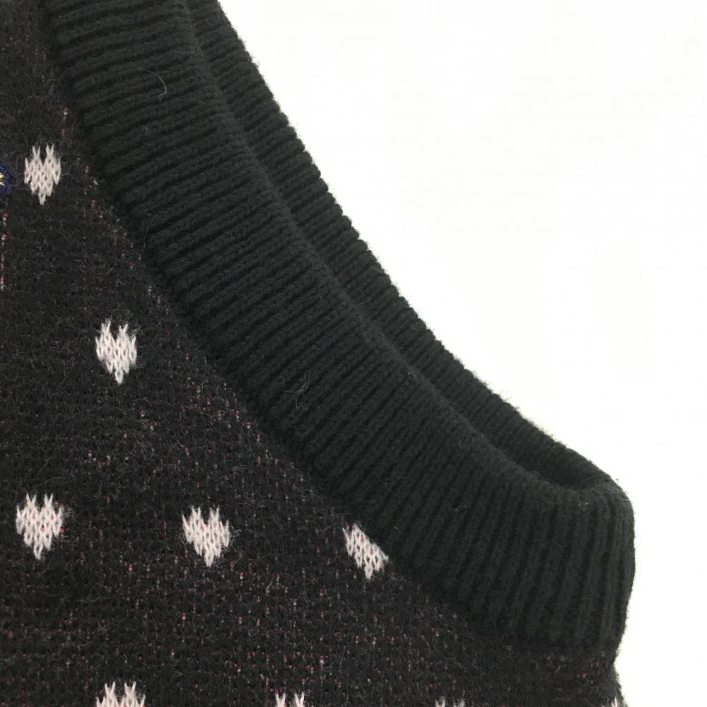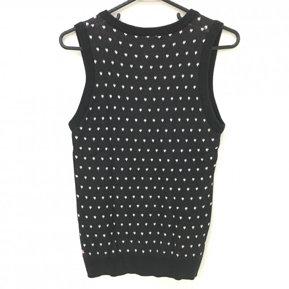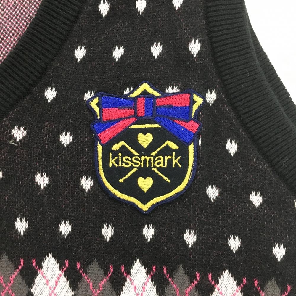 【美品】キスマーク ニットベスト 黒×白×ピンク Vネック アーガイル×ハート レディース M ゴルフウェア kissmarkGOLF