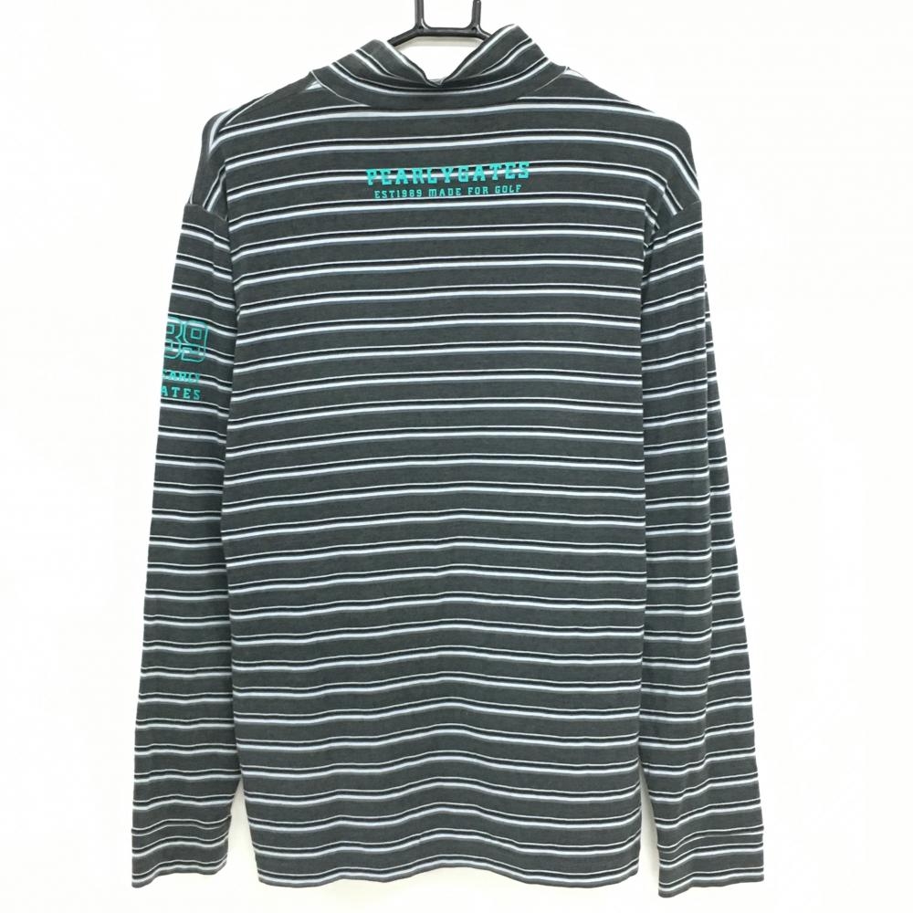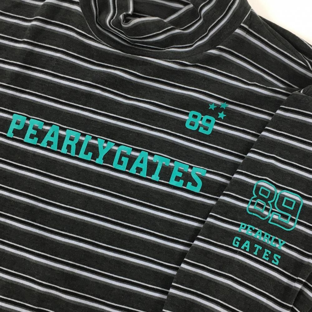 【美品】パーリーゲイツ 長袖ハイネックシャツ ダークグレー×黒 ボーダー 表微起毛 アクリル混 メンズ 6(XL) ゴルフウェア PEARLY GATES