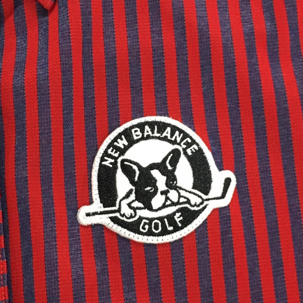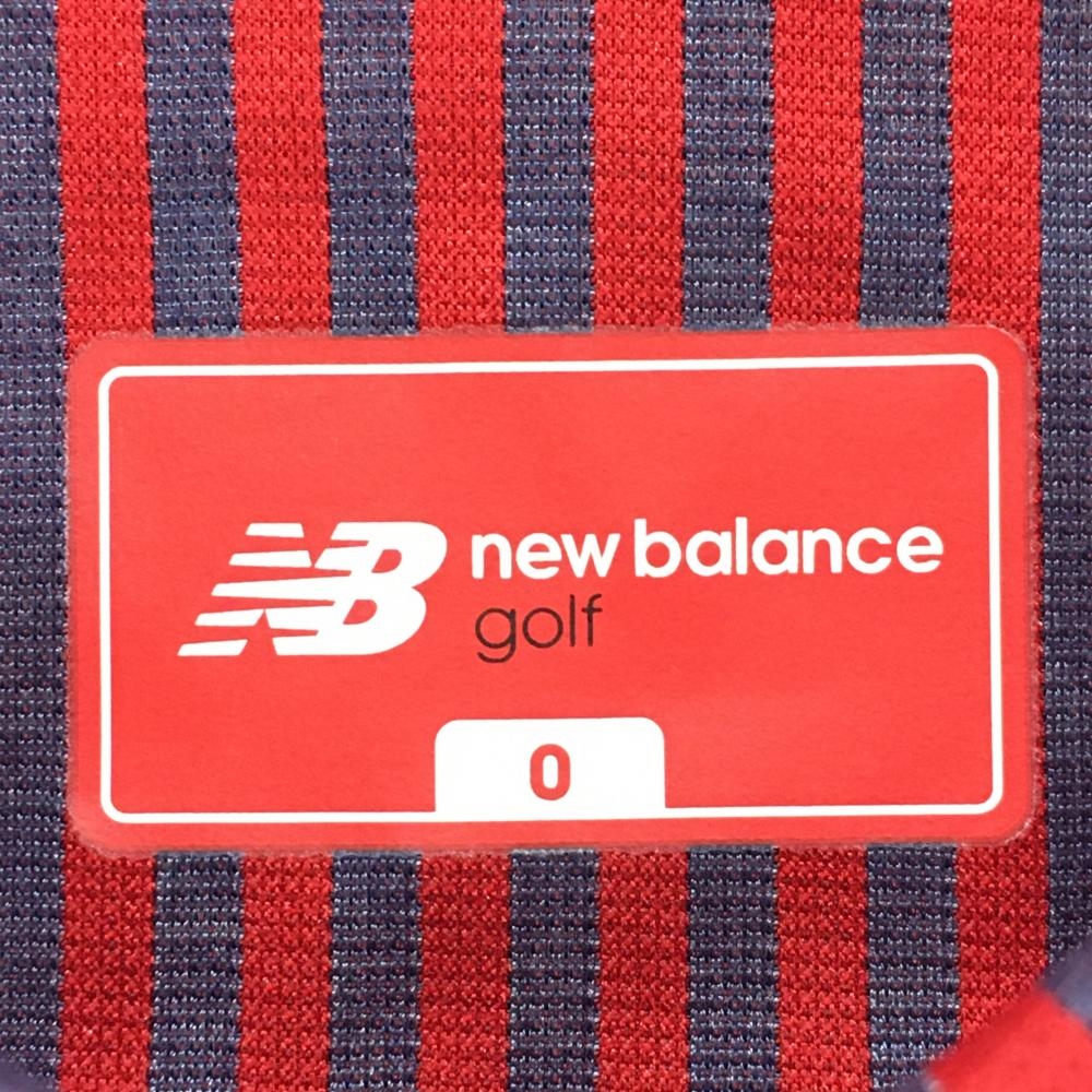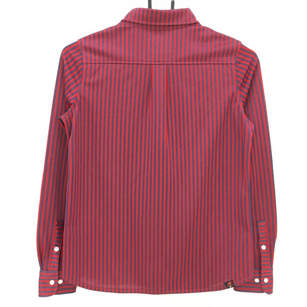 【超美品】ニューバランスゴルフ 長袖シャツ レッド×ネイビー ストライプ ボタンダウン レディース 0(S) ゴルフウェア New Balance
