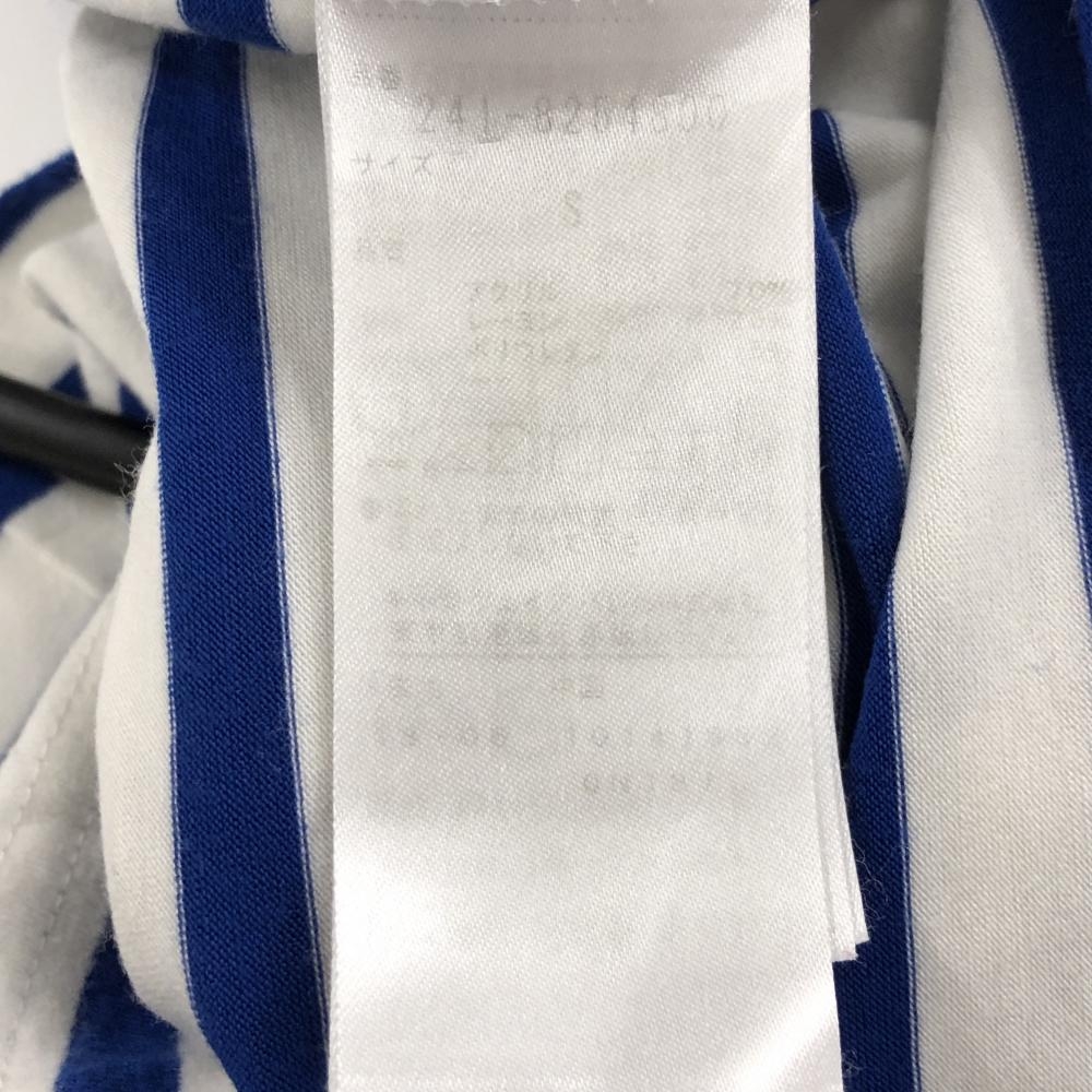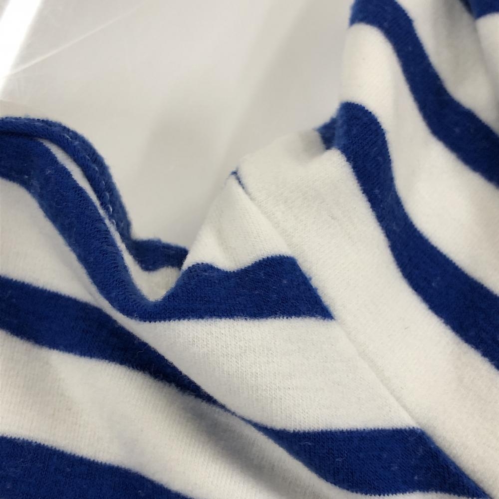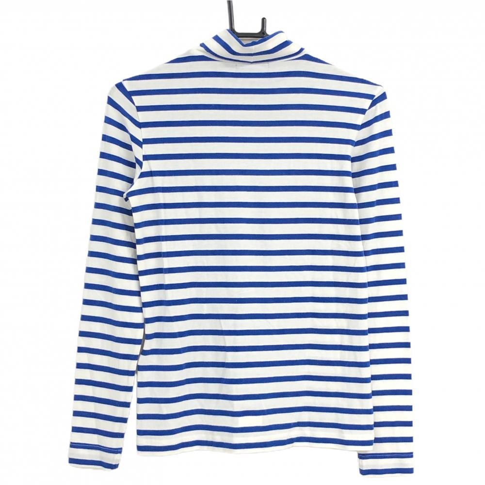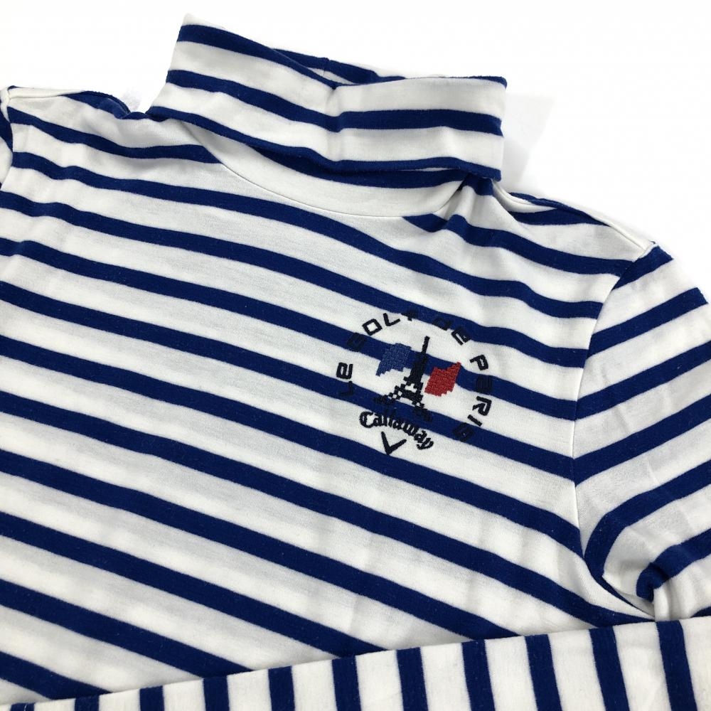 【美品】キャロウェイ 長袖ハイネックシャツ 白×ブルー ボーダー 表微起毛 アクリル混 レディース S ゴルフウェア Callaway