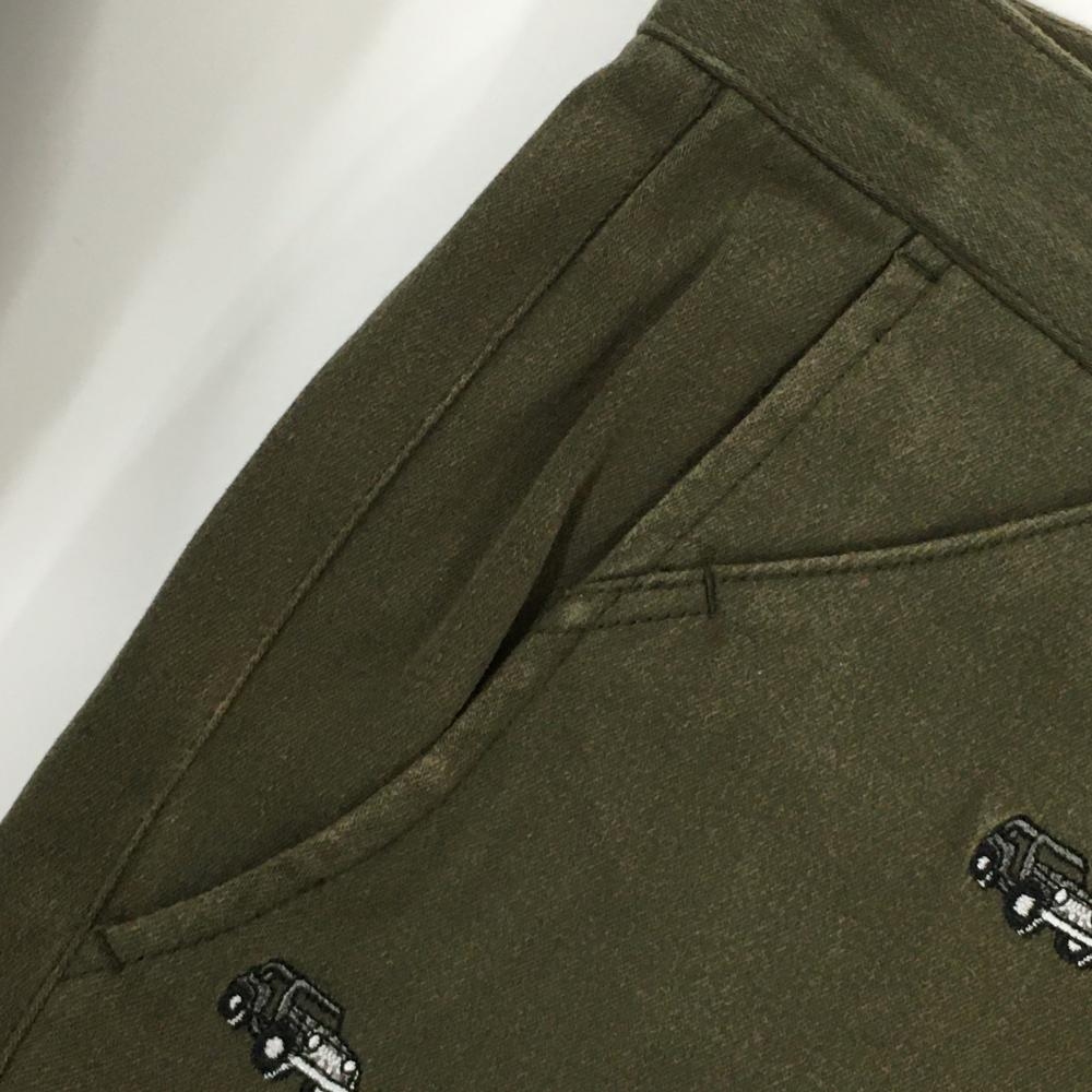 ジャックバニー パンツ カーキ×黒 車刺しゅう総柄 メンズ 4(M) ゴルフウェア Jack Bunny