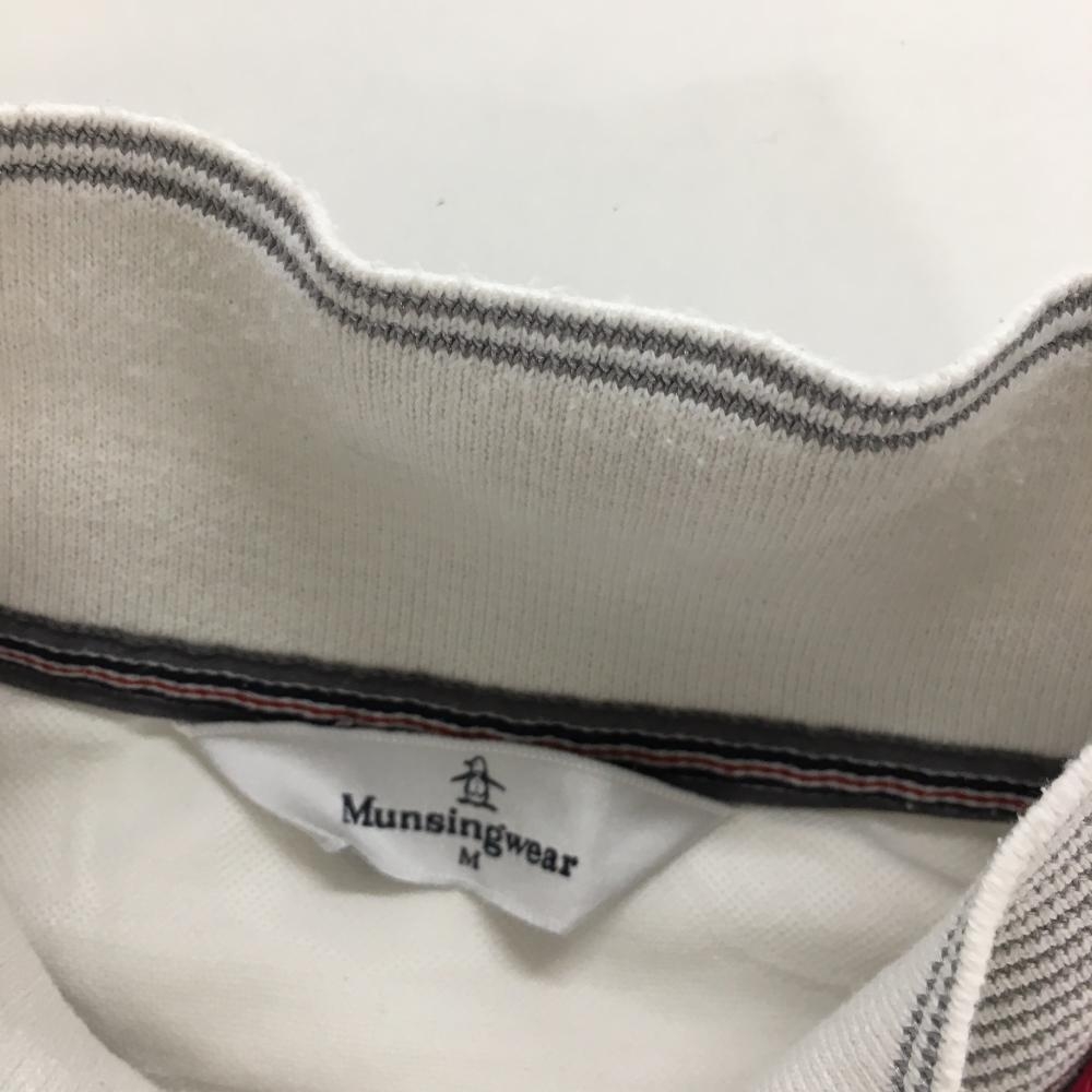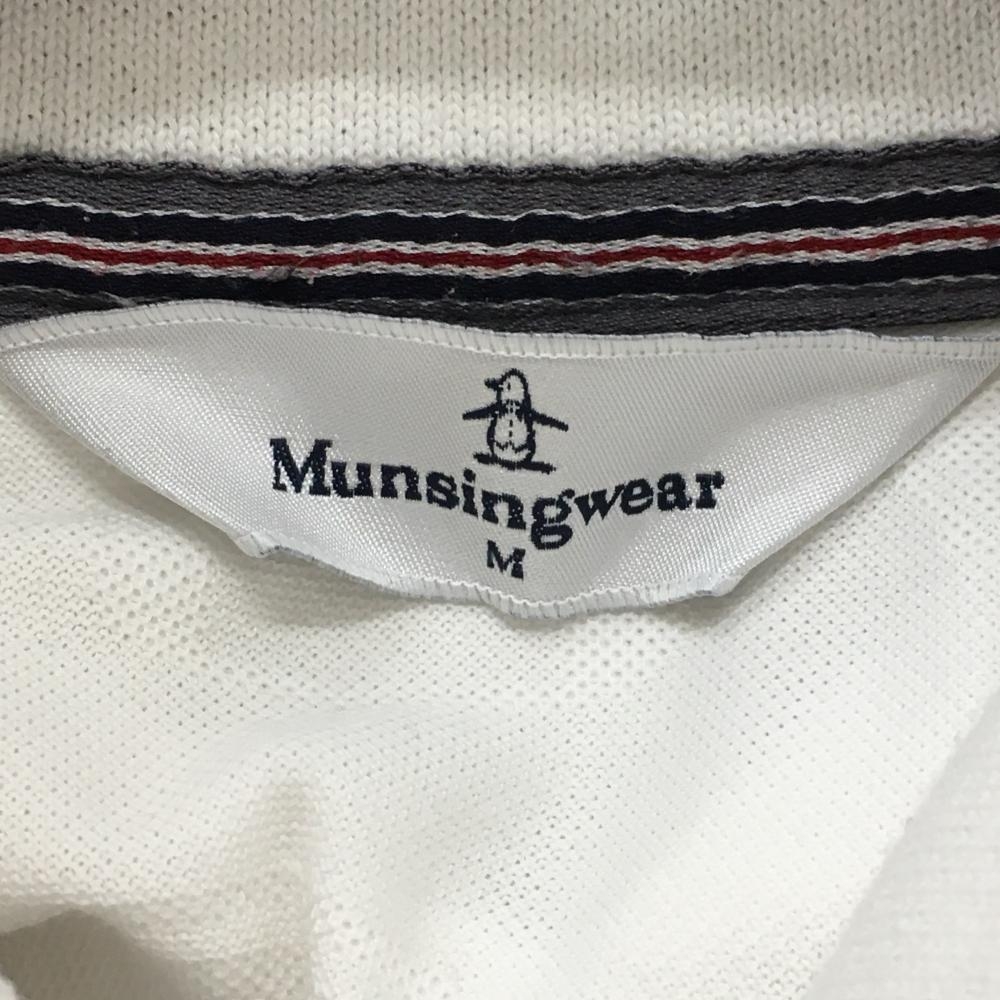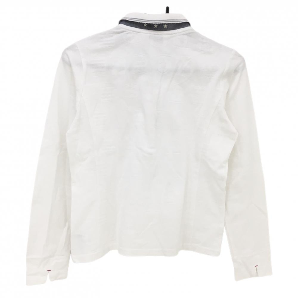 マンシングウェア 長袖ポロシャツ 白 総柄 織生地 ロゴワッペン レディース M ゴルフウェア Munsingwear
