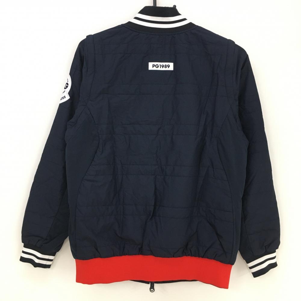 【美品】パーリーゲイツ 中綿リバーシブルジャケット ネイビー×白 片面レッド 4WAY 袖着脱可 レディース 0(S) ゴルフウェア PEARLY GATES
