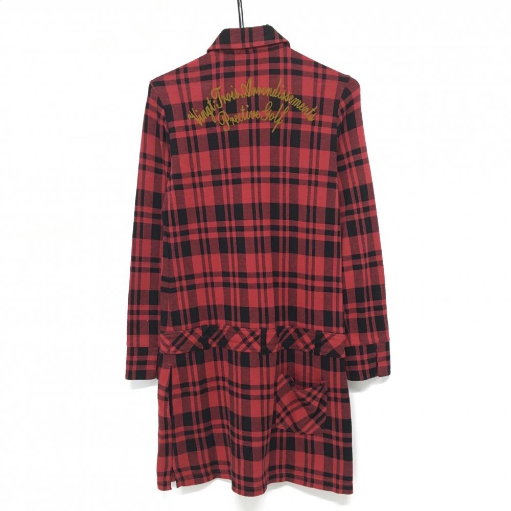 【美品】23区スポーツ シャツワンピース レッド×黒 チェック 背面刺しゅう レディース M-L ゴルフウェア 23区