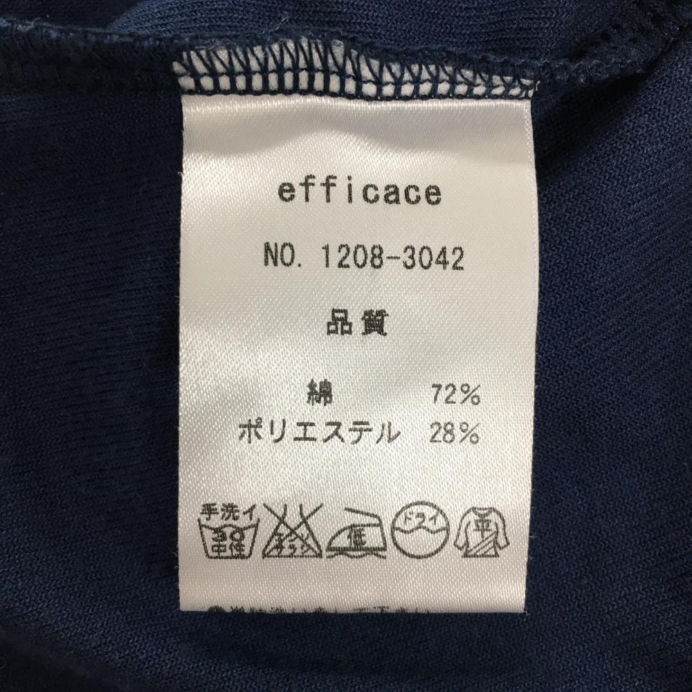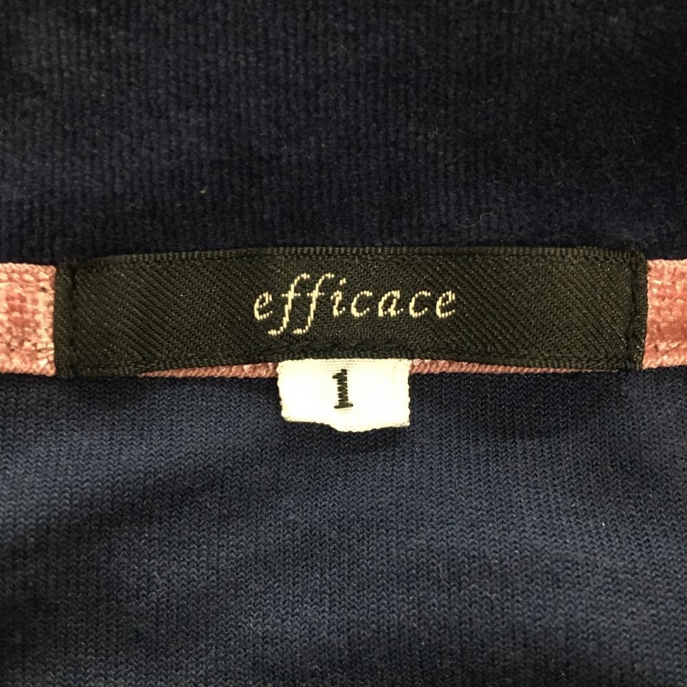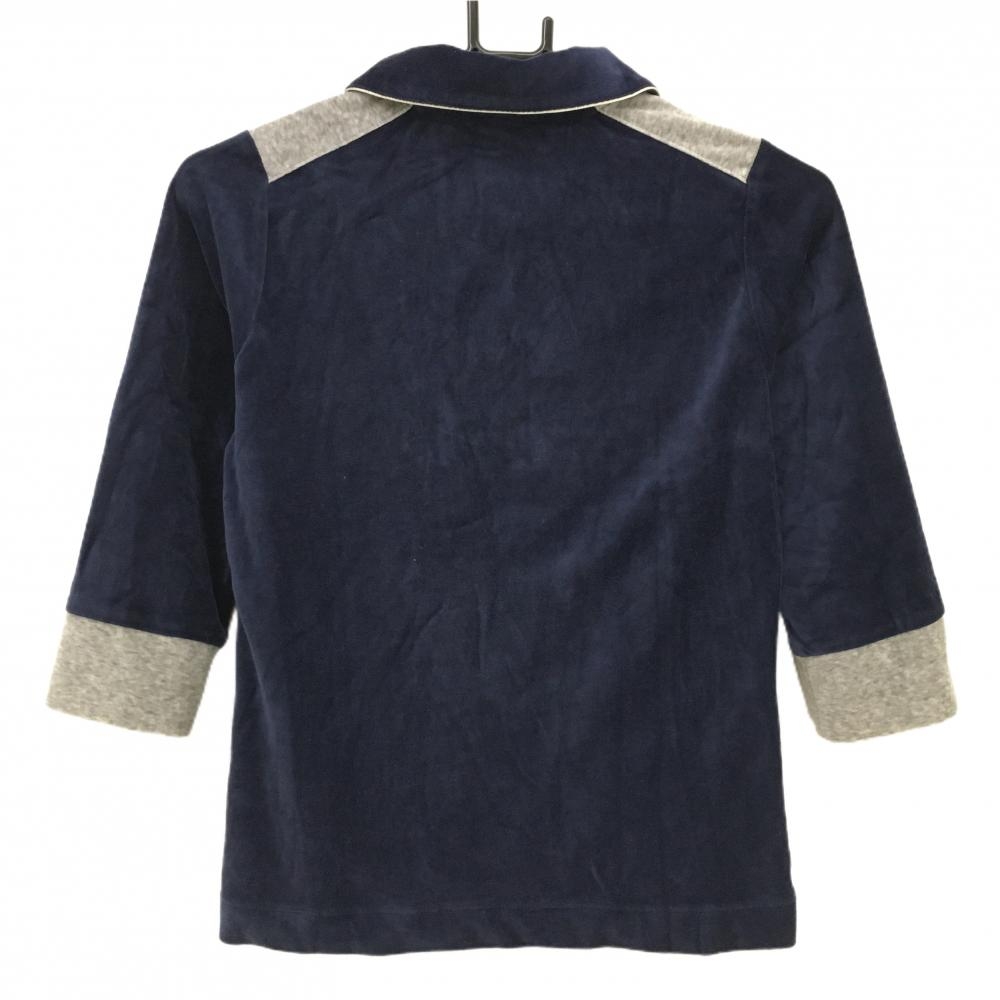【美品】エフィカス 長袖ポロシャツ ネイビー×グレー ベロア生地 パールボタン ラインストーン レディース 1(S) ゴルフウェア efficace