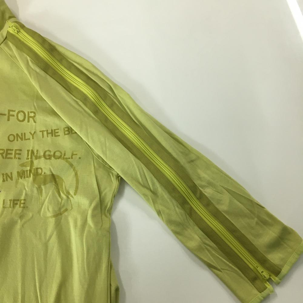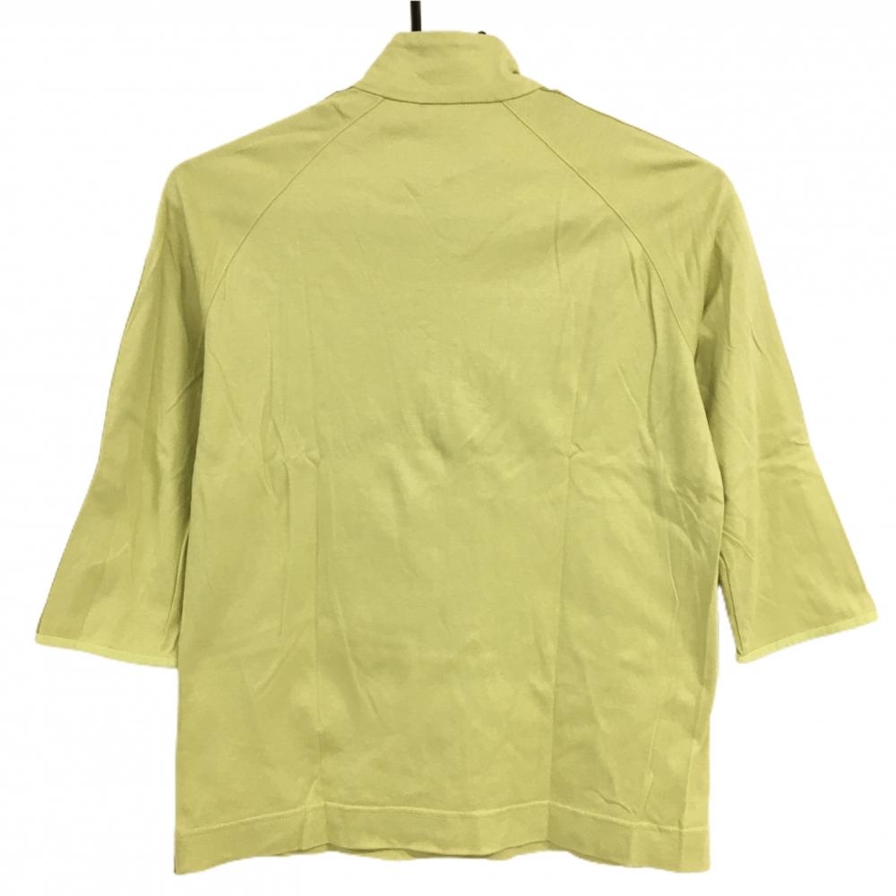 【美品】アダバット 半端袖ハイネックシャツ イエローグリーン ハーフジップ 袖ファスナー レディース I(M) ゴルフウェア adabat