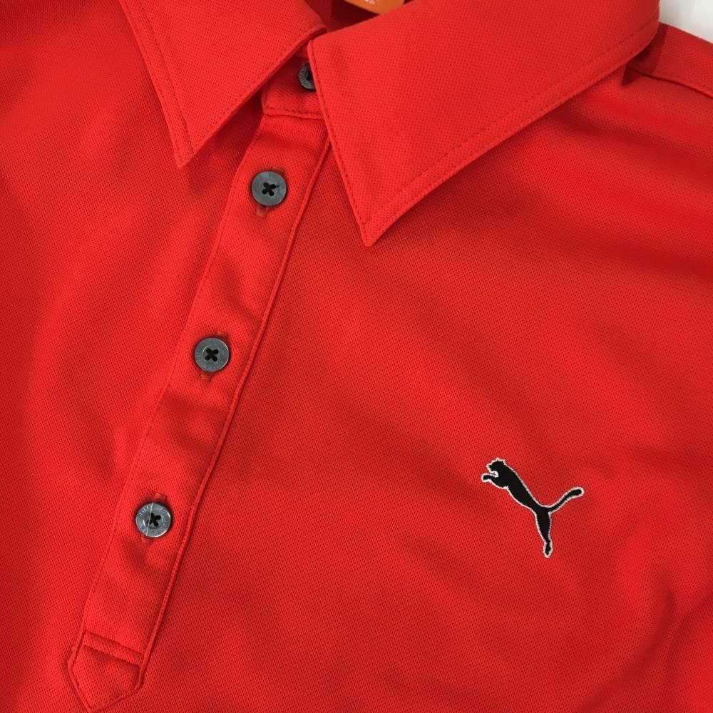 【美品】プーマ 長袖ポロシャツ レッド ロゴ刺しゅう メンズ O ゴルフウェア PUMA
