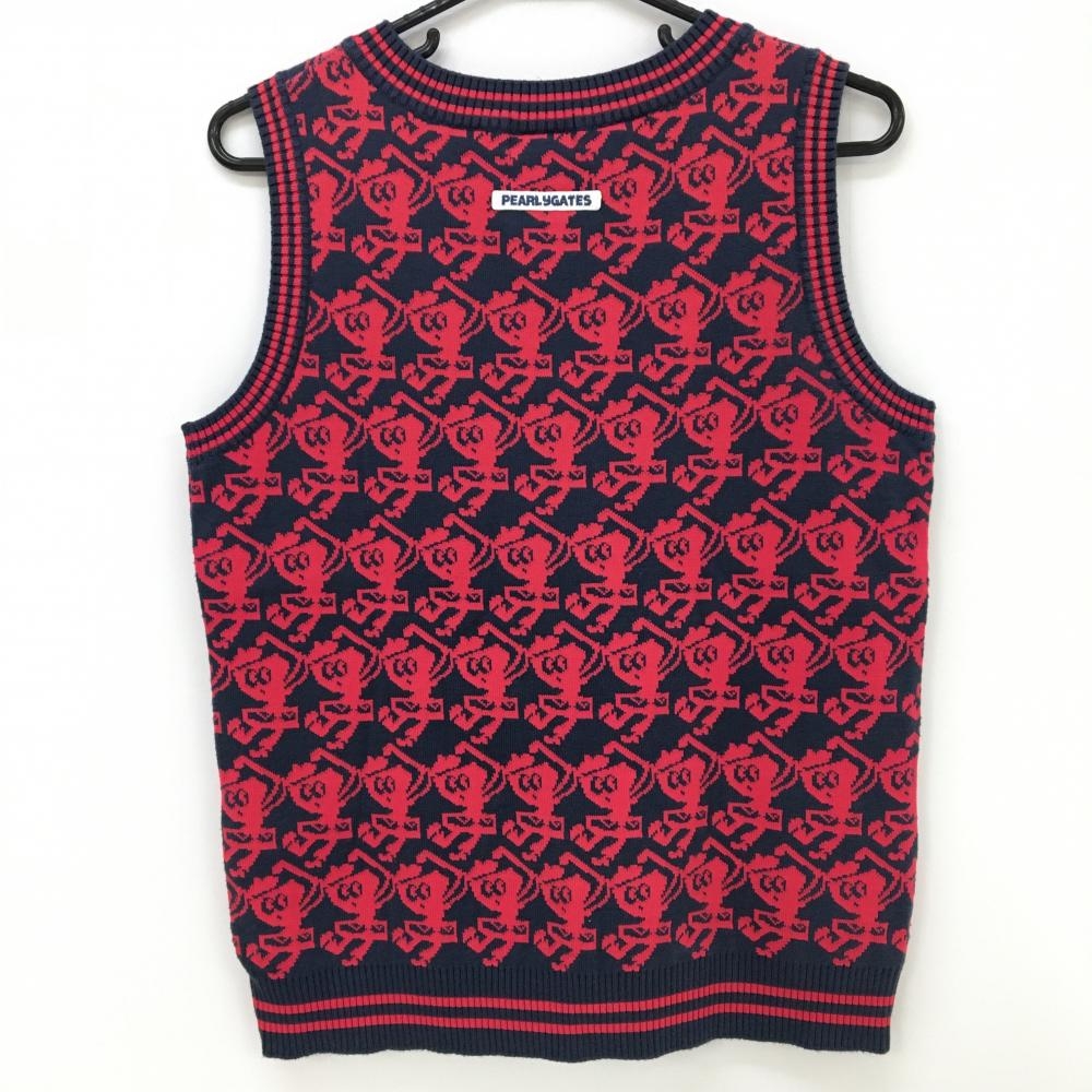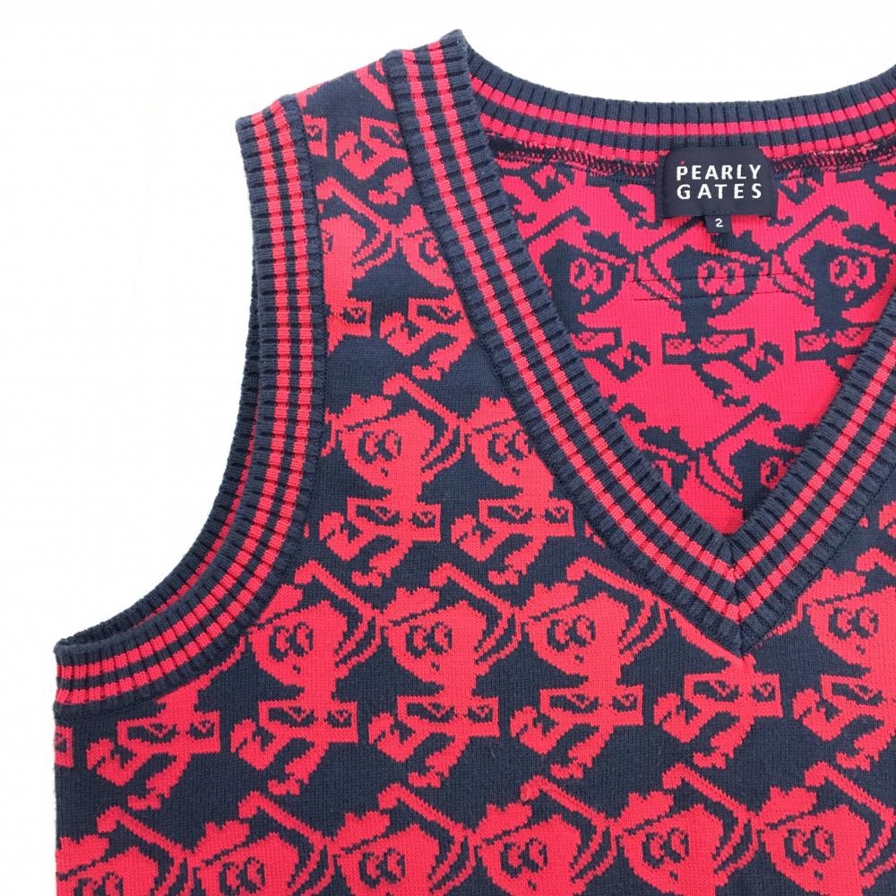 パーリーゲイツ×スポンジボブ ニットベスト ネイビー×レッド 総柄 コットン混 レディース 2(L) ゴルフウェア PEARLY GATES